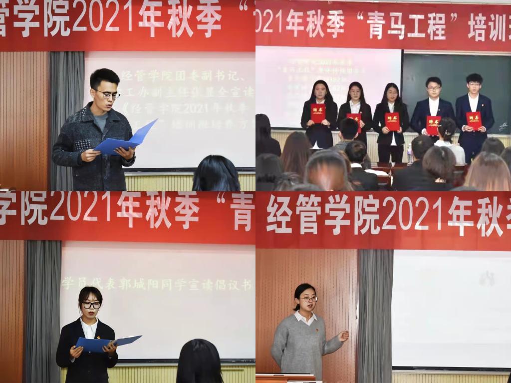 为深入贯彻落实习近平总书记关于青年工作的重要思想,坚持马克思主义在意识形态领域的指导地位,巩固和扩大党的青年群众基础,培养具有忠诚的政治品格,浓厚的家国情怀,扎实的理论功底,突出的能力素质,忠恕任事、人品服众的青年政治骨干,按照中共中央、国务院《中长期青年发展规划(2016-2025年)》,共青团中央《“青年马克思主义者培养工程”实施方案》、《关于深入实施青年马克思主义者培养工程的意见》等有关精神和学校团委相关部署要求,11月23日下午,经管学院举办2021年秋季“青马工程”培训班开班仪式。