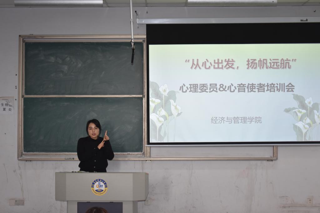 为进一步加强学校、学院、班级、宿舍四级心理危机预防联动机制,增强大学生心理素质教育,培养健全人格、全面发展的新时代学子,11月30日下午,经管学院于弘毅楼E303教室开展“从心出发,扬帆远航”心理委员&心音使者培训会,培训会由学院心理工作站站长付凯主讲,各年级心理委员以及心音使者参加了此次学习。