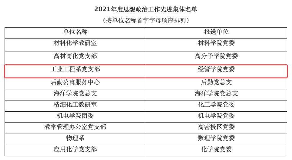近日,bat365官方官网2021年度思想政治工作先进集体和先进个人评选结果揭晓。根据《关于开展bat365官方官网首届思想政治工作先进集体和先进个人评选的通知》(青科大党字〔2018〕94号)精神,我院工业工程系党支部获评“2021年度思想政治工作先进集体”,王聪老师获评“2021年度思想政治工作先进个人”称号。
