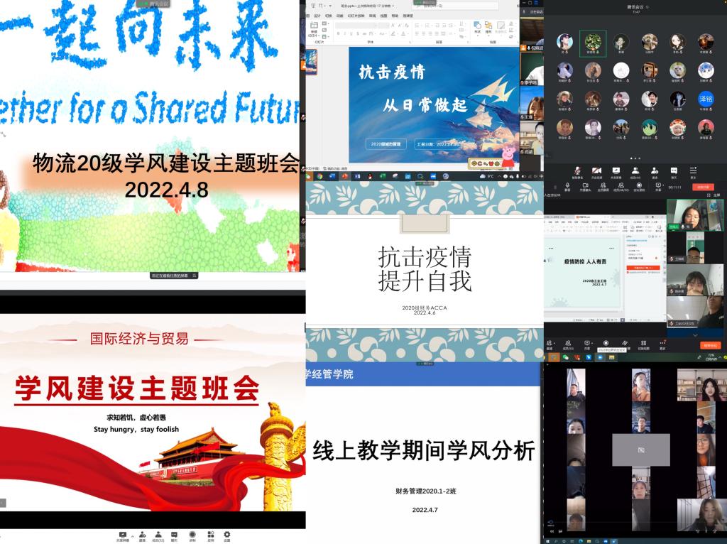 为认真贯彻落实疫情防控学校关于疫情防控工作的重要指示,做好新冠疫情防控工作,进一步提高学生疫情防控意识,加强学风建设,营造疫情防控期间的良好学习氛围,不断提高本科生培养质量,近期,经管学院2020级各专业班主任组织开展线上主题班会,立足学校全员、全程、全方位的“三全育人”的工作格局,引导同学同心战‘疫’,万众一心打赢疫情防控战。