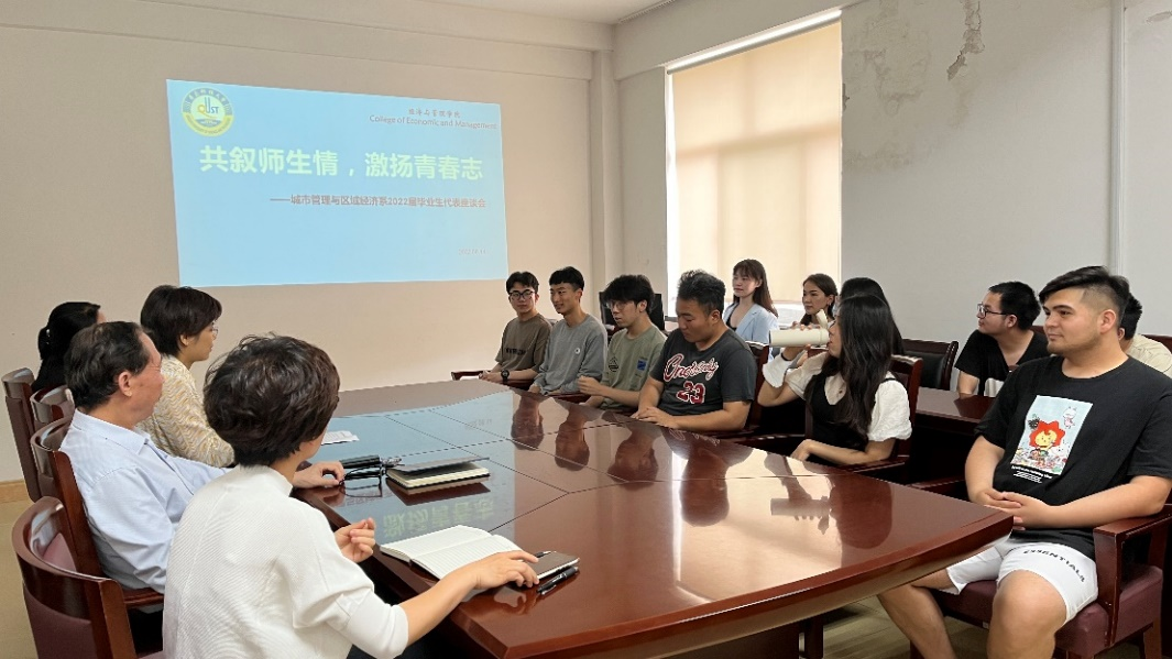 从五湖四海来,到天南地北去。6月14日下午,经管学院城市管理与区域经济系于经管楼501会议室开展“共叙师生情,激扬青春志”2022届本科毕业生座谈会。党委班子成员联系支部领导宫攀,城管系教师代表及2022届毕业生代表参与座谈会。座谈会由系主任万婕主持。