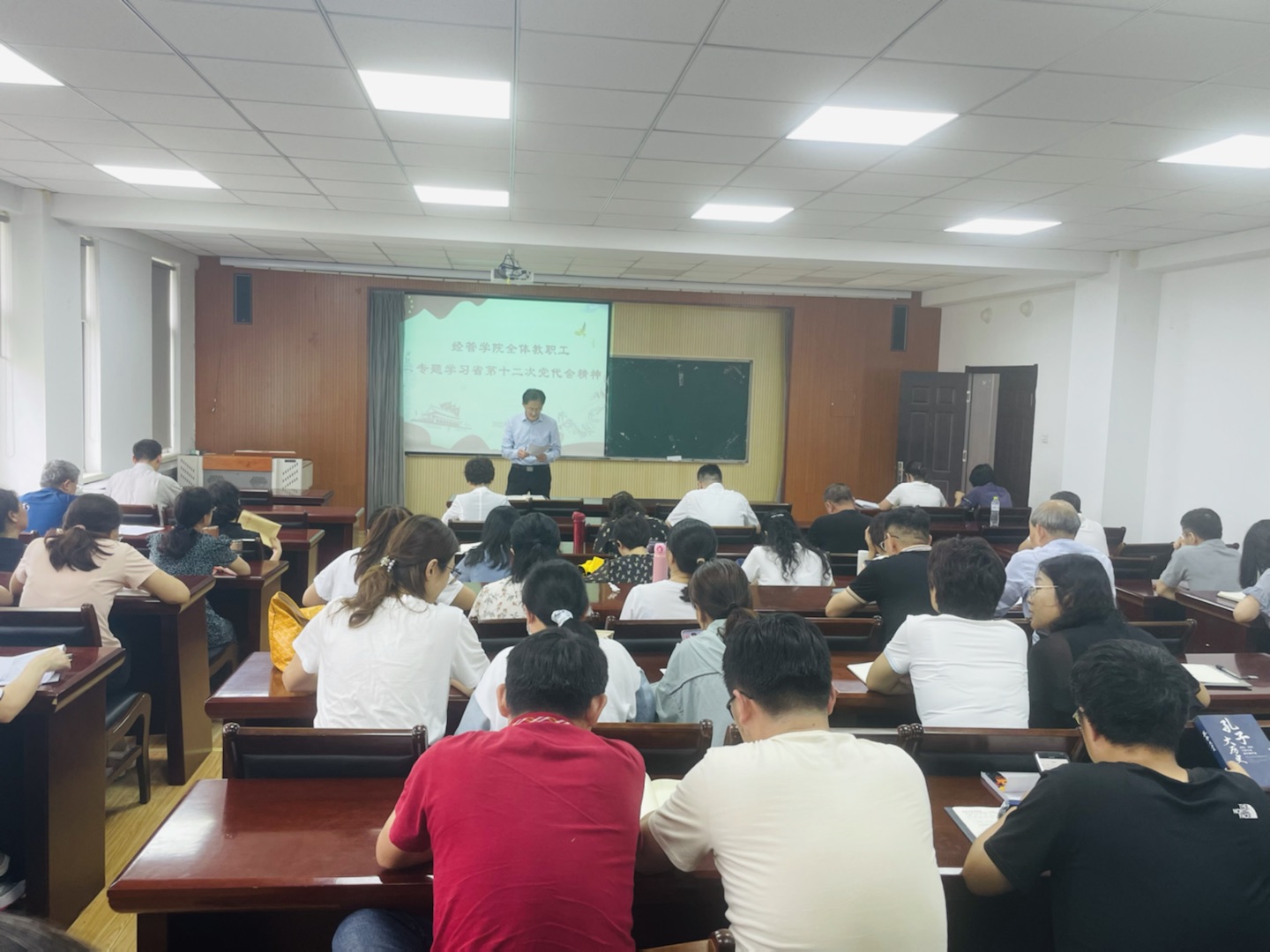 6月21日下午,经管学院于经管楼419室召开山东省第十二次党代会精神专题学习会暨全体教职工大会,学院全体教职工参加会议,学院党委书记李德成主持会议。