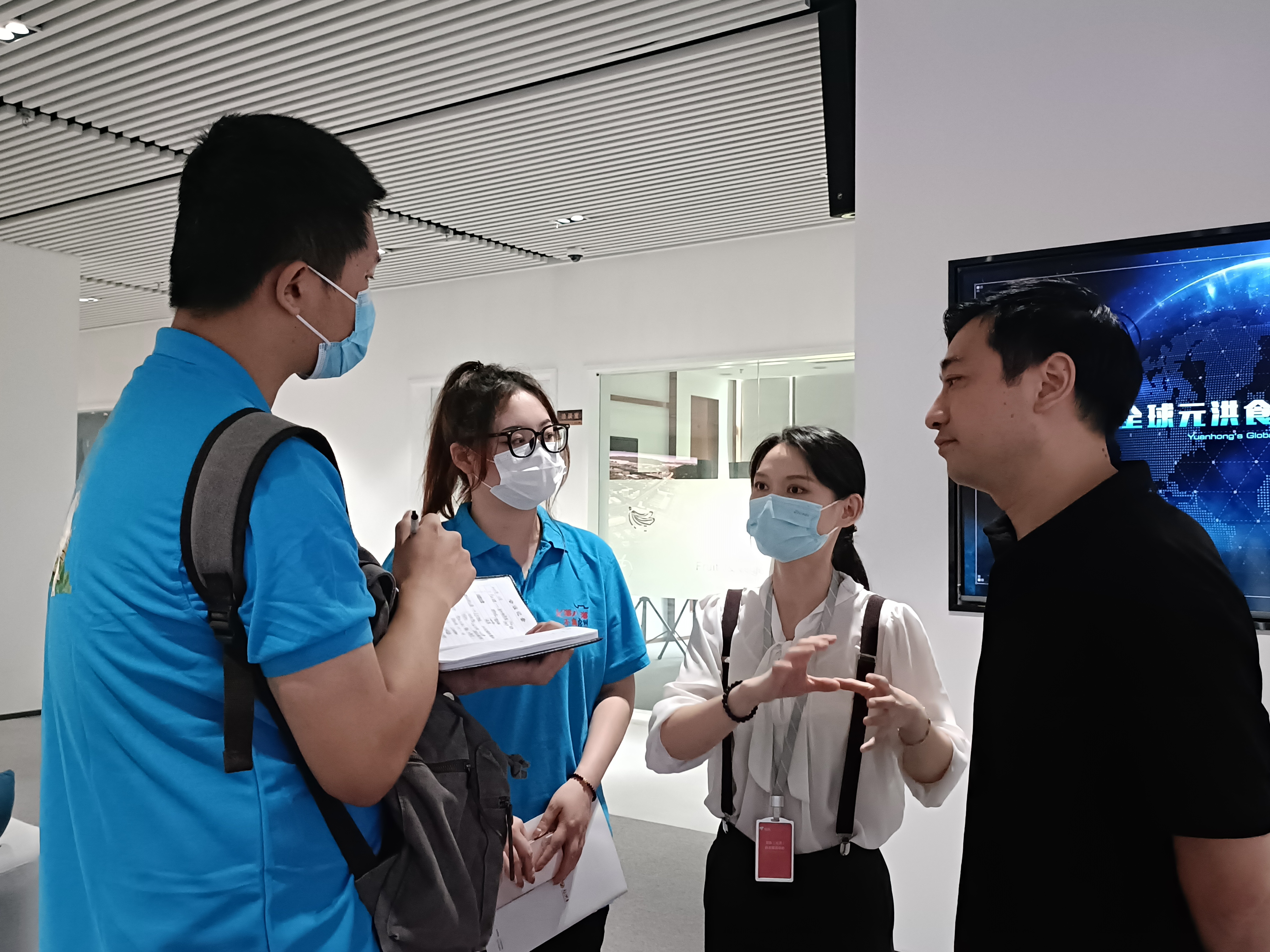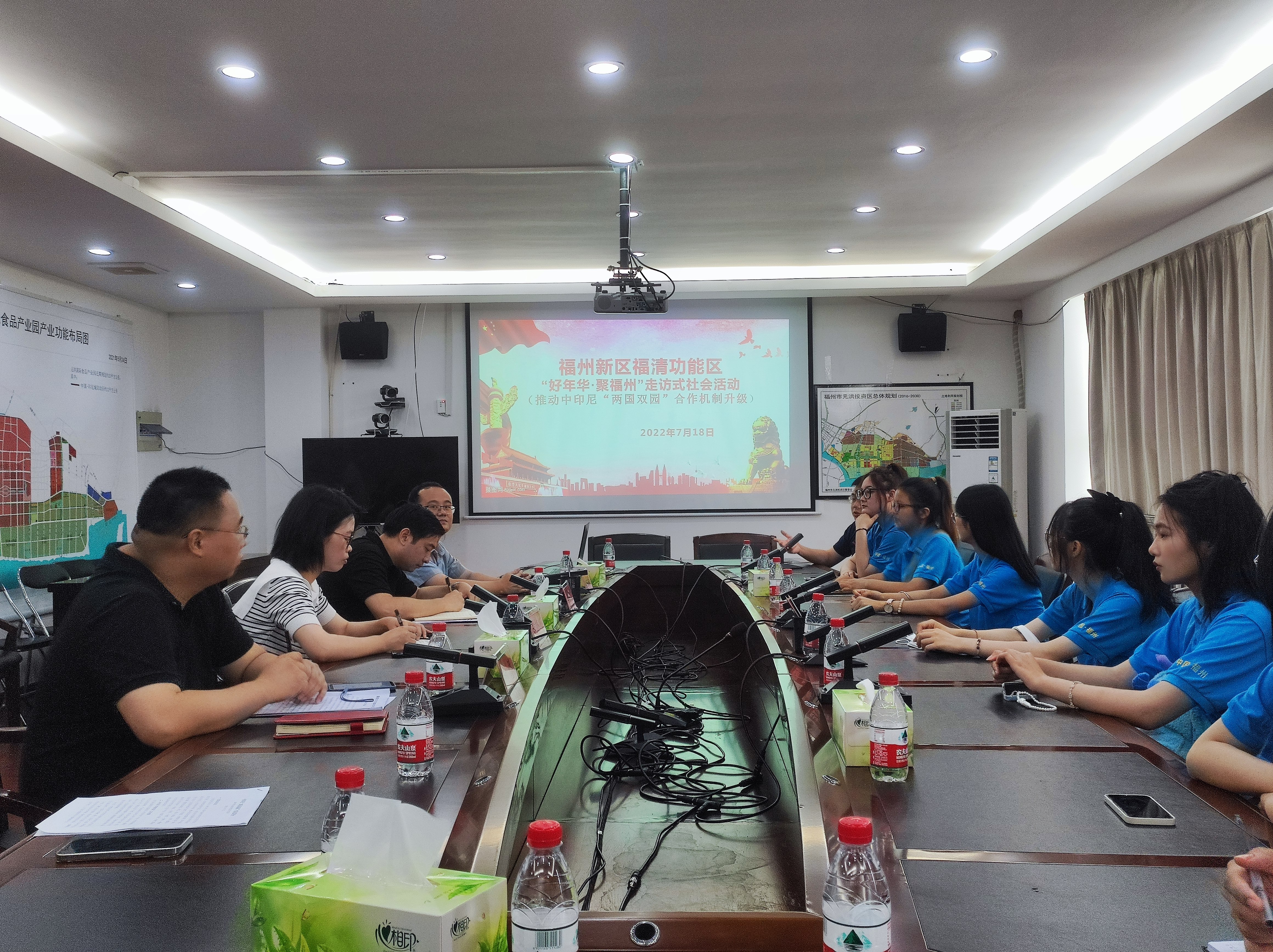 在座谈会结束后,相关负责人带领实践团成员前往会议室,与京东工作人员一起共同解答实践团的问题。在这场解答会中,实践团了解到福清市位于海上丝绸之路和陆上丝绸之路的重要联结点,同样,印尼也是海上丝绸之路的重要国家,且印尼海产品资源丰富,于我国在海产品方面的需求端十分适配。两国双园围绕“一条鱼、一块肉、一袋米、一桶油、一粒果”的产品生态链,打造大宗食材供应链。而与印尼合作很好的解决了一条鱼问题。其次,两国双园符合国家“引进来”和“走出去”的政策要求,推动国家战略与民间资本的有效结合,实践企业本土化发展战略,也让更多企业融入国际市场。再次,我国同样考虑到印尼方面发展诉求,综合考虑区位优势、产业基础、市场需求,让印尼发展当地潜力较大的农产品行业,形成双方优势互补、共同发展的局面。在此期间,实践团进一步深入了解实际问题,共同商讨改进措施,为福清发展贡献自己的力量。