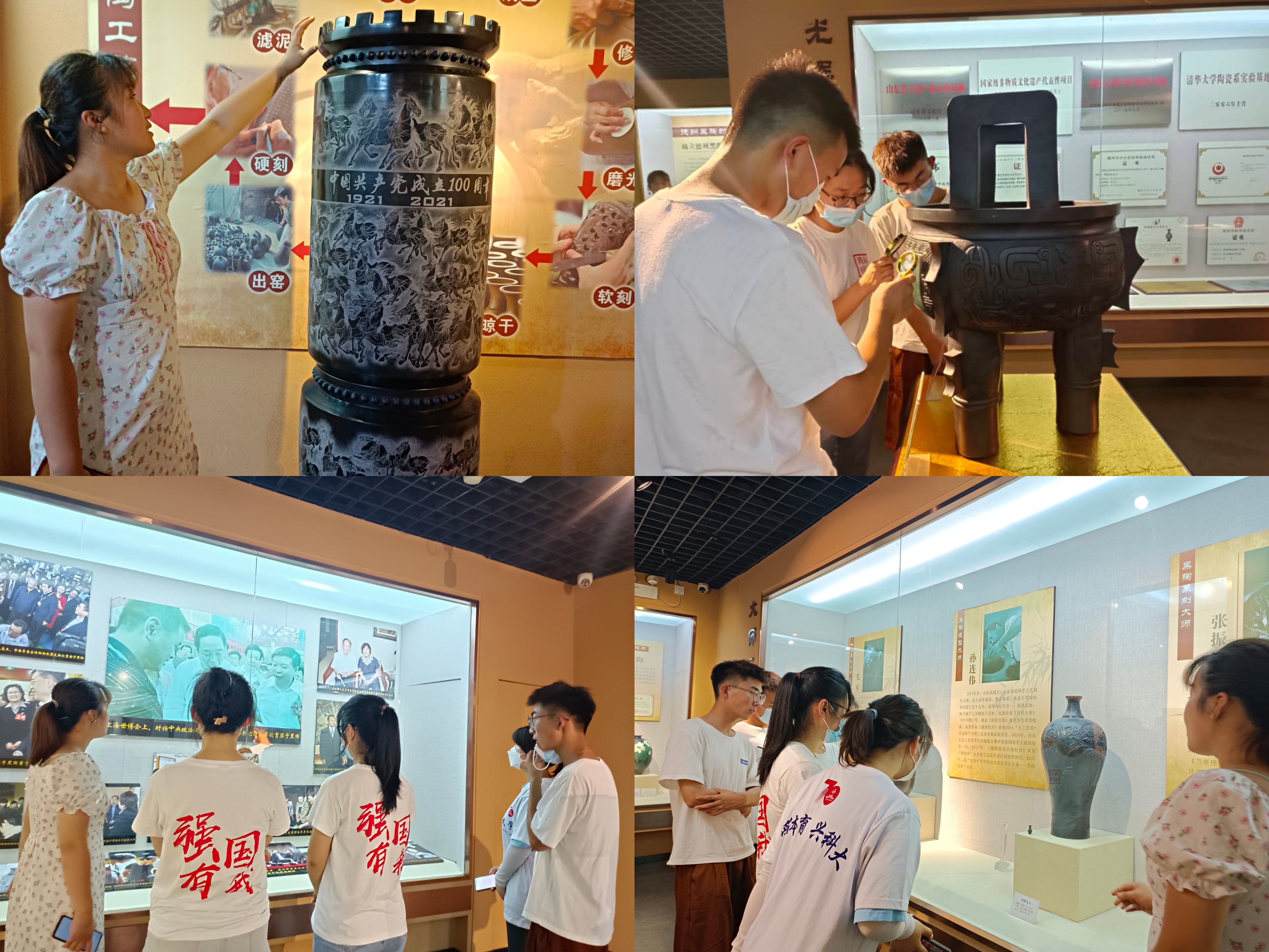 为了加强对中国非物质文化遗产的了解、传承和保护,积极响应保护非遗的方针政策,让非遗文化被更多人所熟知,7月13日-14日,bat365官方官网赴德州市德城区德州梁子黑陶文化发扬团成员前往山东省德州市黑陶城博物馆进行实地参观,近距离领略了“点土成陶”这一化腐朽为神奇的过程,聆听了一曲黑陶制作的“金木水火土”交响乐,感知了黑陶的魅力——器型美、色彩美、雕刻美、纹饰图案美,深切地感受到了黑陶文化的前世今生。