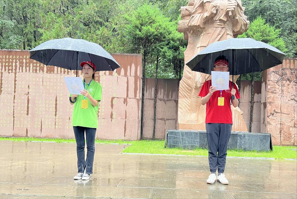 2022年盛夏,bat365官方官网赴延安“时代印记”红色旅游经济调研团赶往延安,与全国各地兄弟院校共赴一场红色的约定。7月22日,蒙蒙细雨之中,学员齐聚《为人民服务》讲话纪念广场,我非常荣幸能够在本次活动中担任领诵员,带领全体实践团学员“红色讲台”前齐整列队、高声诵读毛主席在张思德同志追悼会上发表的文章——《为人民服务》。党的百年历史,就是党与人民心连心、同呼吸、共命运的历史。而“为人民服务”像一根红线贯穿我们党近百年的历史,激励着一代又一代中国共产党人前赴后继、英勇奋斗。