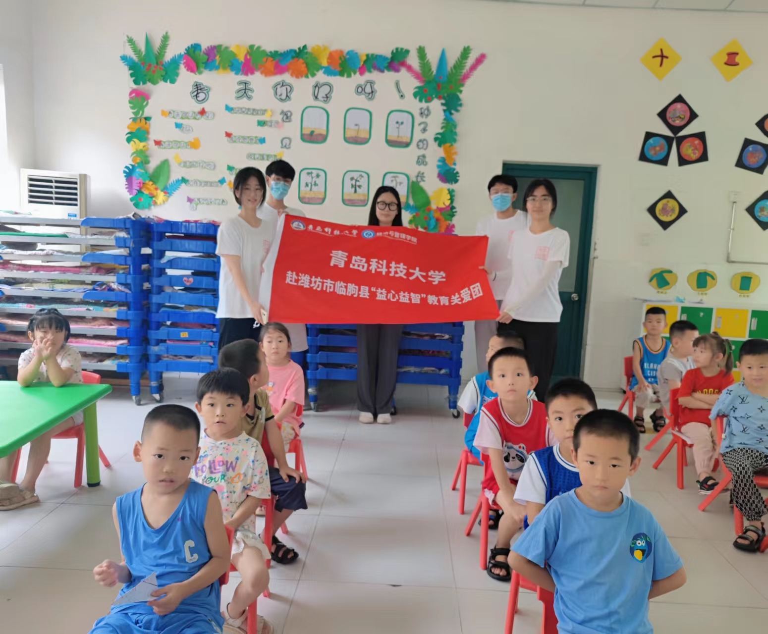 7月15日,三下乡成员来到临朐当地一家幼儿园。为进一步关爱当地儿童,帮助他们开阔视野、拓展素质、树立自信,提供思想引领、学业辅导、亲情陪伴、素质拓展、自护教育等帮助和服务。志愿者们与孩子们互相介绍自己,互相了解。在实践中,三下乡小队注重活动形式与内容创新,贴近实际、贴近生活、贴近儿童,结合专业特色,发挥学业和个人技能优势,准备了许多有趣的活动。