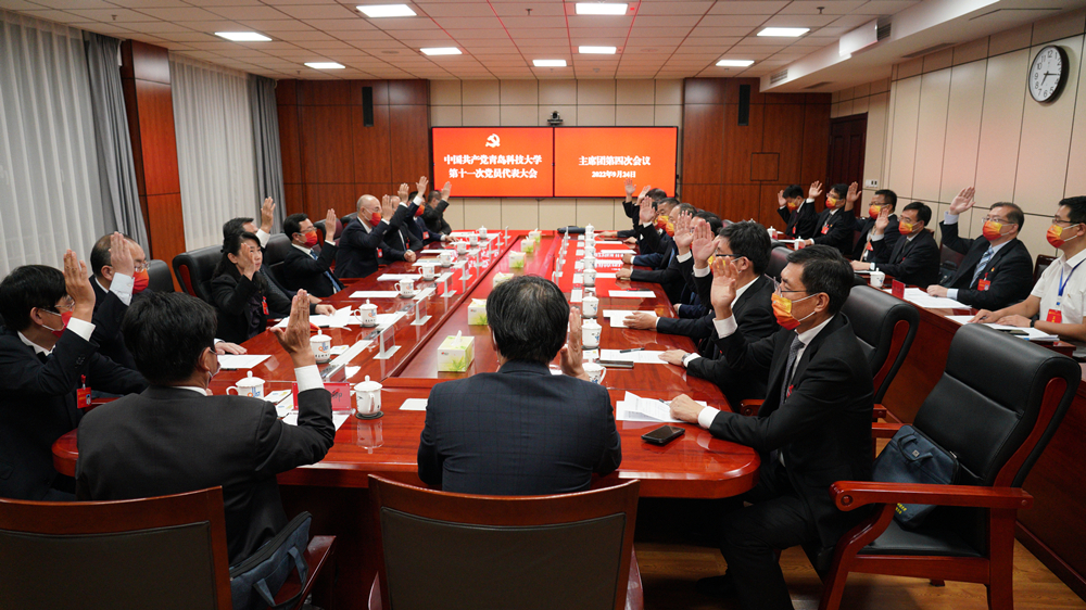 9月24日晚,中国共产党bat365官方官网第十一次党员代表大会主席团第四次会议在崂山校区综合服务楼6015会议室召开。李兴伟同志主持会议,主席团成员参加会议。