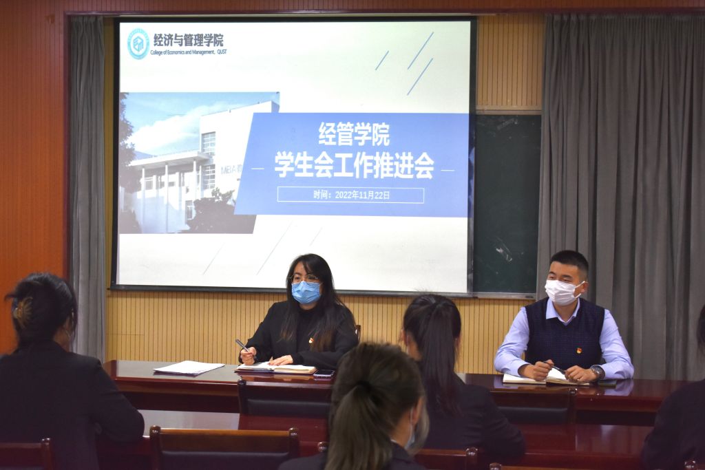 为切实增强学生骨干的模范带头作用,稳步推进学生会工作的顺利进行,经管学院学生会于11月22日在经管楼419召开了学生会工作推进会议。学生会指导老师付凯、袁绍正老师出席本次会议,会议由付凯老师主持。
