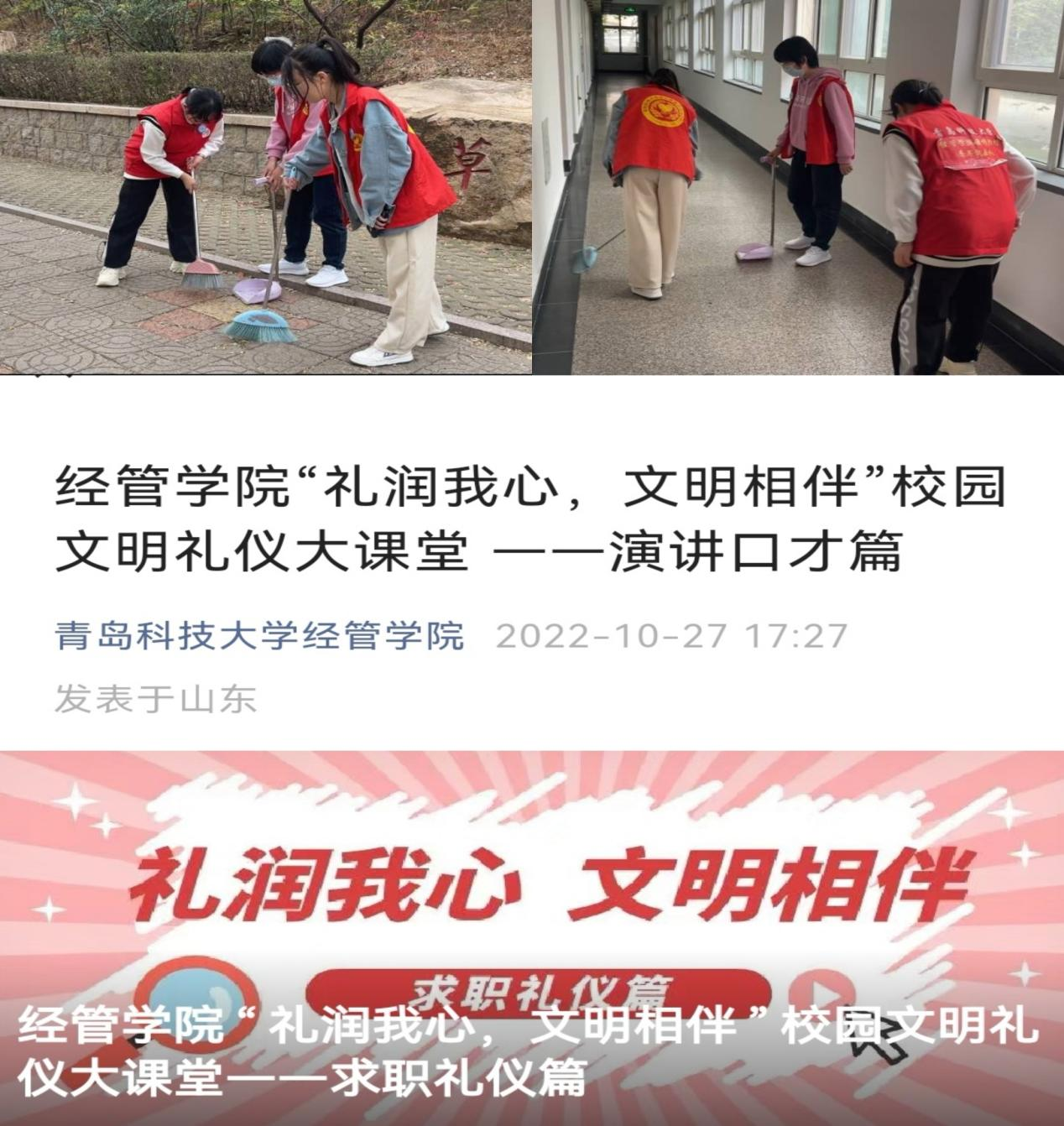 为落实党的教育方针,扎实推进学风教育,培养和提高同学们的口语表达能力,加强同学们的文明礼仪意识,响应校园文化月活动要求,共创文明和谐校园,经管学院学生会于学院公众号推送“校园文明礼仪大课堂”系列文章,从求职礼仪、演讲口才等方面引导同学们保持良好的礼仪习惯,践礼仪之行,争做时代先锋青年。