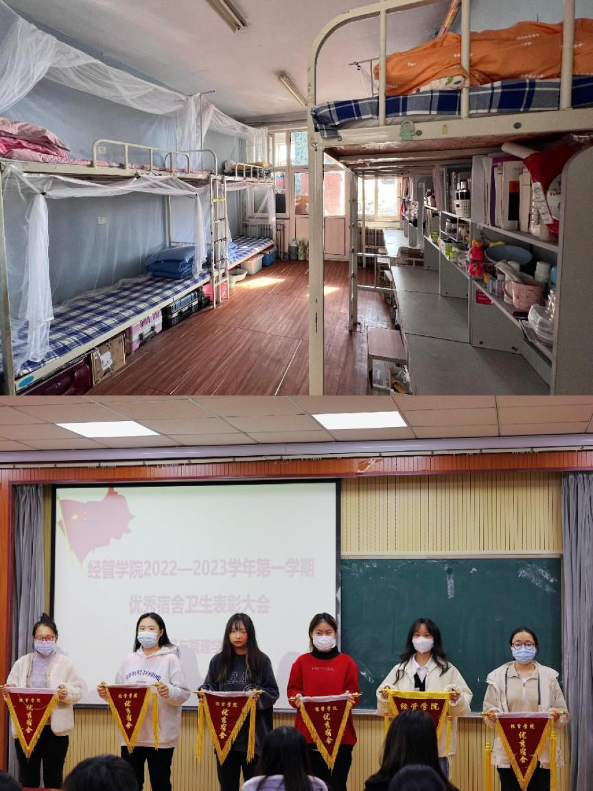 为强化学生宿舍安全和卫生意识教育,督促学生保持安全、良好的宿舍环境,经管学院严格要求各宿舍每周进行卫生大扫除,并积极配合学院卫生检查。同时根据高标准、严要求、抓落实三个要点,评比出经管学院“优秀文明宿舍”,颁发锦旗及奖品,充分发挥模范带头作用,营造温馨和谐的寝室氛围。