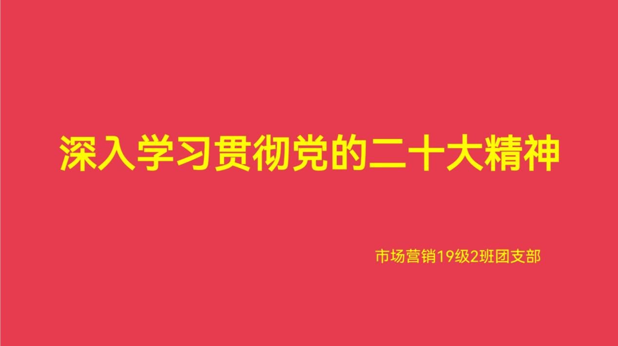 为庆祝中国共产党第二十次全国代表大会胜利召开,深入学习贯彻习近平新时代中国特色社会主义思想,切实提高大学生思想政治素养,引导青年学子听党话、跟党走、感党恩,将爱党爱国爱校的热情投入到学习和生活中去,经管学院市场营销192团支部开展深入学习党的二十大精神主题团日系列活动,多形式、多渠道宣传党的二十大精神,营造出浓厚的学习宣传氛围。