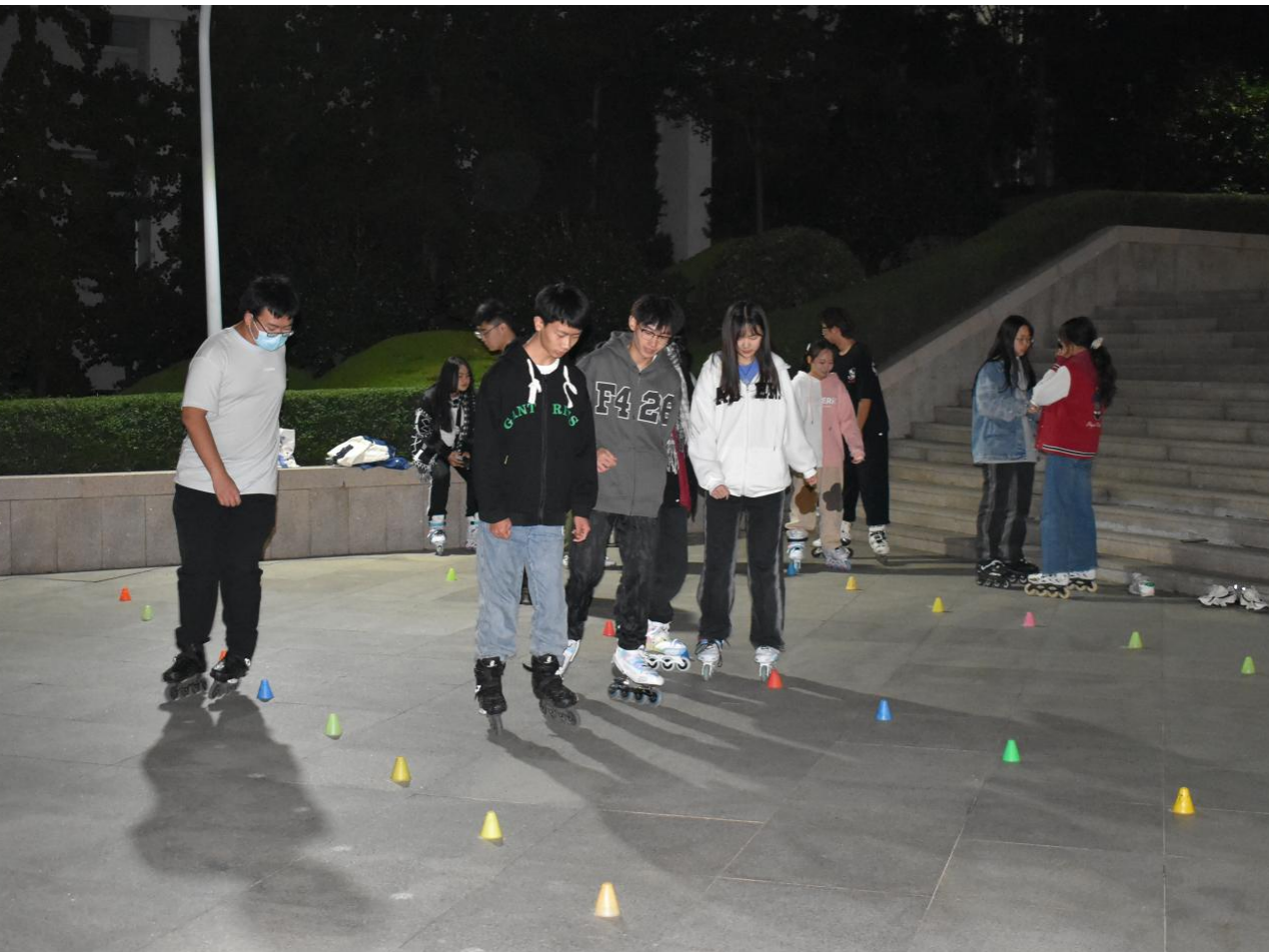 在本次轮滑联赛中,协会老成员带领新入会同学进行高级轮滑滑行的要领的教学。比赛中,避免单调乏味,联赛采用趣味比赛的形式,既锻炼了新生的灵活性,增强了22级经管新生们对轮滑的兴趣,更提高了新生们对体育的热爱。一次次跌倒,也是一次次成长、进步,滑行速度不断提高,感受风从耳边嗖嗖的刮过,把一切烦恼抛在脑后。在精彩的轮滑比赛中,同学们用青春、活力的动作展示着力与美的视觉享受。