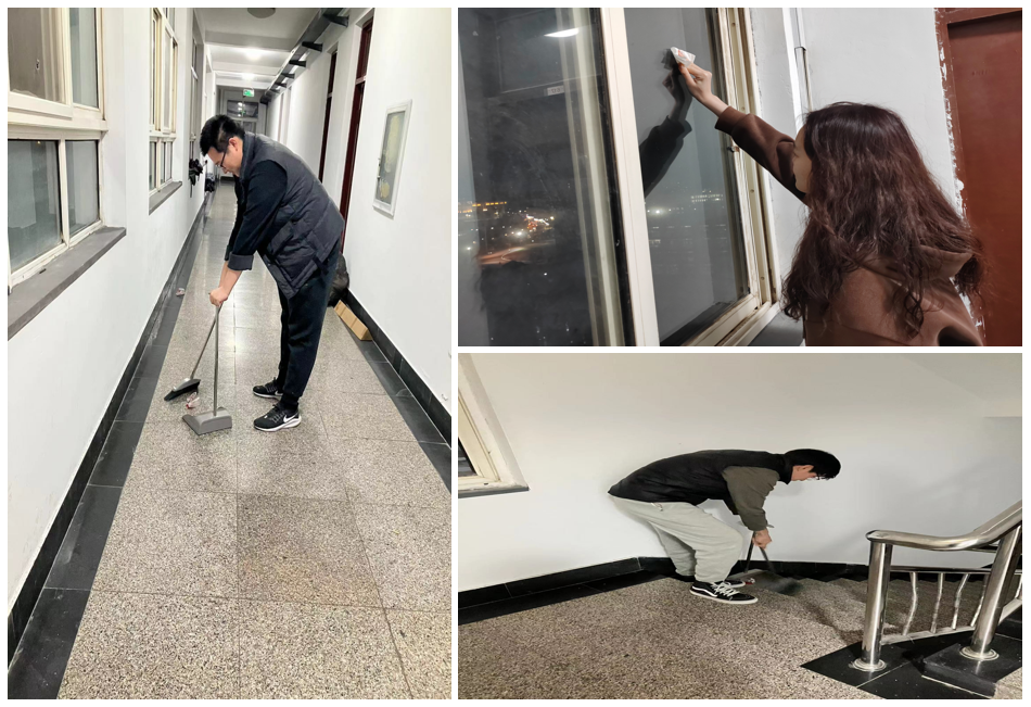 组织清洁活动,擦亮“家”的“名片”。各支部成员积极参与“擦亮‘家’的‘名片’”活动,明确责任分工和清洁区域,在所住宿舍楼的楼道内、楼梯间开展清扫工作。团员青年们勤快认真、热情开朗,成为了宿舍楼内一道靓丽的风景线。清扫活动发扬了雷锋精神,进一步培养了同学们的环境卫生意识,创建了整洁文明的学习和生活环境,同时,也为同学们养成良好的生活习惯打下坚实的基础。