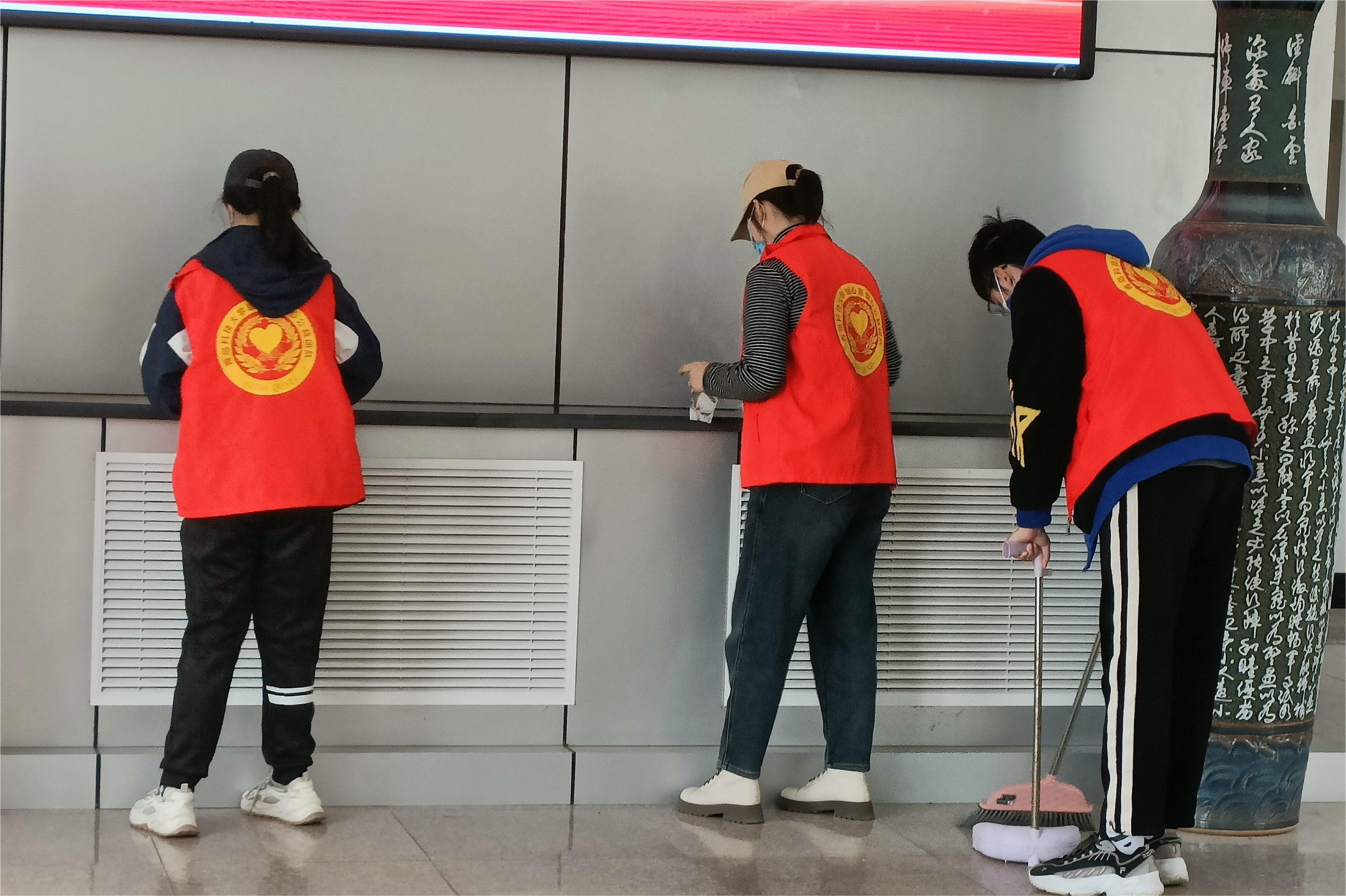 3月21日,根据活动方案,志愿者们在经管楼集合并就清扫区域进行工作分划,分发清扫工具,明确工作任务,组织同学们对经管楼各个角落的卫生进行处理。志愿者们迅速进入状态,清扫垃圾、擦拭楼梯,虽忙碌不已,却也乐在其中。经过志愿者们近2个小时的辛勤劳动,经管楼内环境变得干净整洁,志愿者们也在劳动中进一步传承和发扬了热爱劳动、无私奉献的精神。