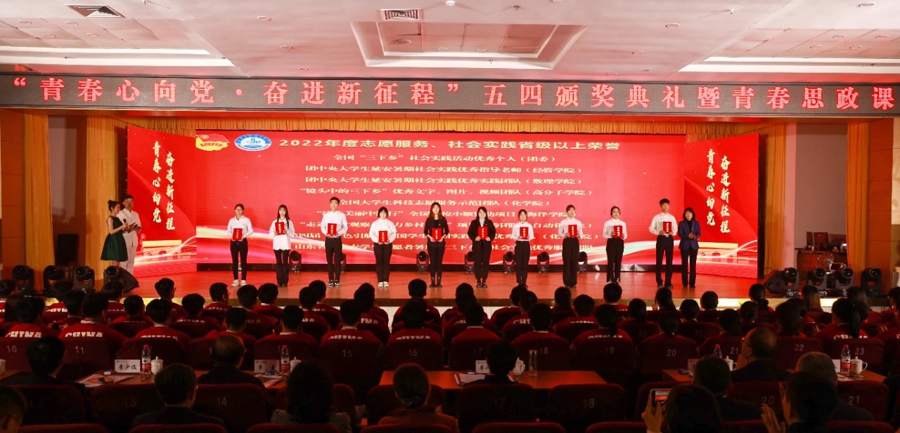 5月4日下午,学校2022年度“青春心向党 奋进新征程”五四颁奖典礼暨青春思政课在崂山校区第二报告厅举行。校领导,学校机关各部门、各学院负责人及百余名青年大学生欢聚一堂,共同见证属于青科大青年的光辉时刻。经管学院排演的朗诵节目《青春誓言》登上青春思政课舞台,彰显了经管学子的青春风采和昂扬姿态。