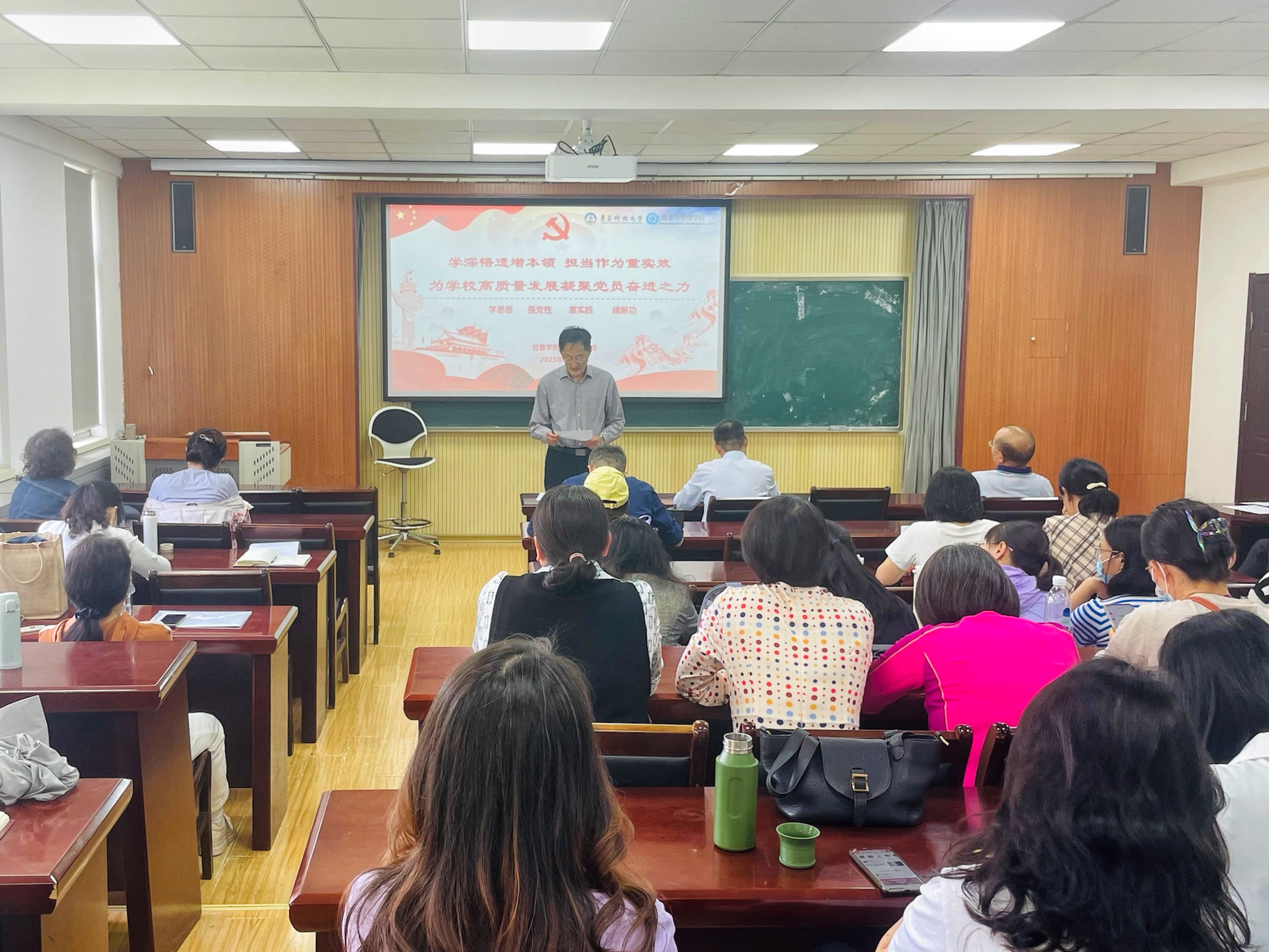 为推进学习贯彻习近平新时代中国特色社会主义思想主题教育走深走实,5月16日下午,经管学院在经管楼419会议室组织开展立德树人大讲堂之教师党员专题培训会,学院党委书记李德成主持会议,学院院长李勋来作师德师风专题思政课,全体教职工参加会议。