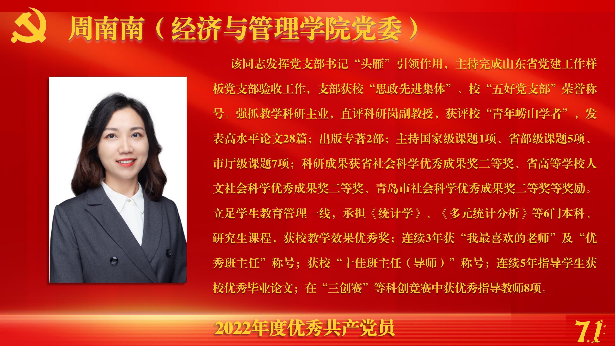 为庆祝中国共产党成立102周年,进一步表彰先进、提振精神、树立典型,近日,学校“两优一先”表彰结果公布,经管学院党委获“红旗”基层党组织,工业工程系党支部书记周南南老师获优秀共产党员(教工),研究生第一党支部党员解文文获优秀共产党员(学生)。
