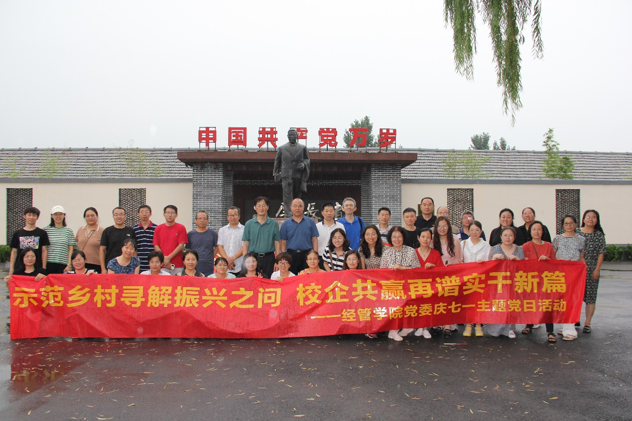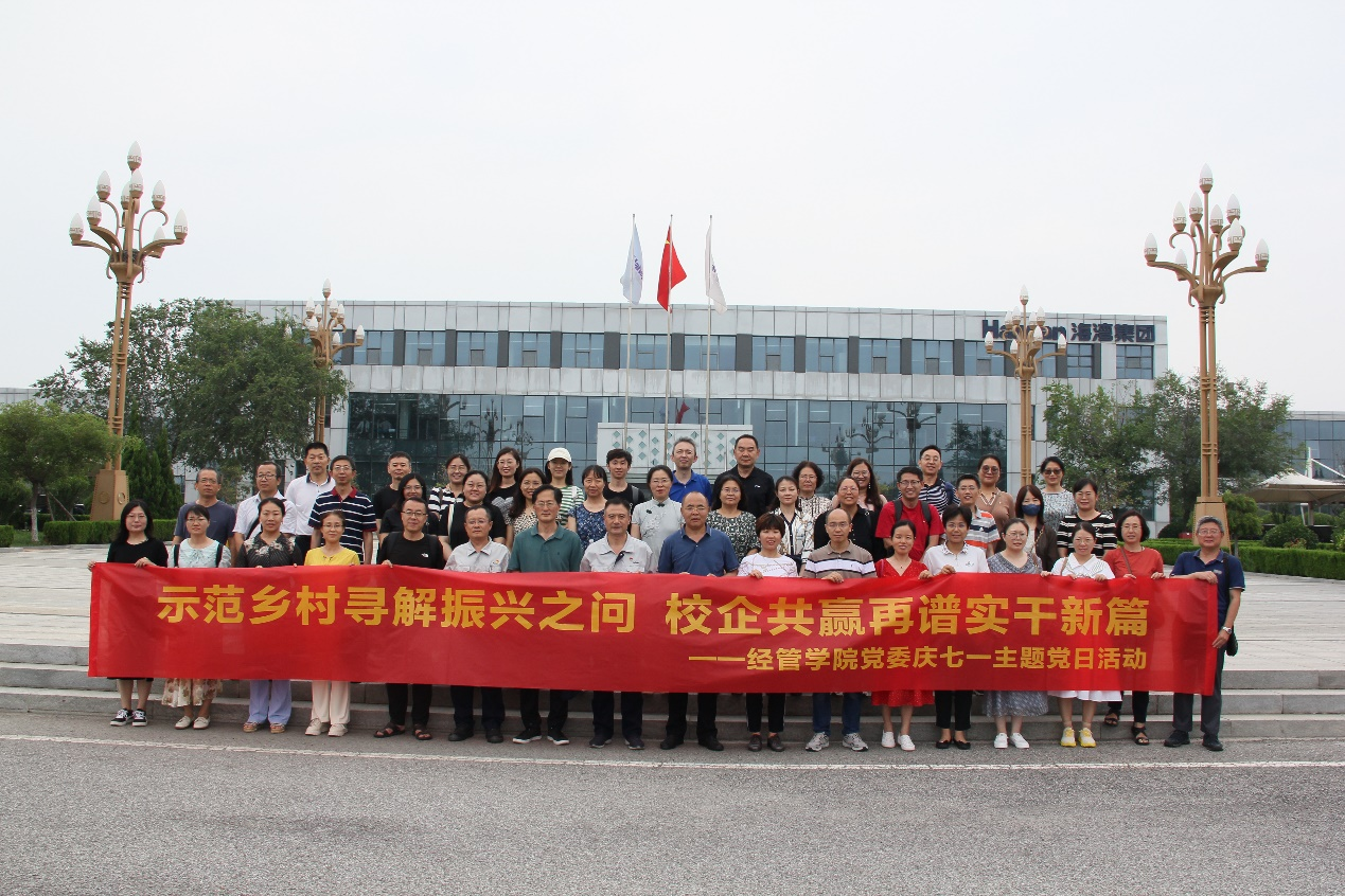 7月12日经管学院组织学院老师开展“示范乡村寻解振兴之问校企共赢再谱实干新篇”庆七一主题党日活动,学院党委书记李德成、组织员王成果、副院长宫攀和学院老师共同参与调研。