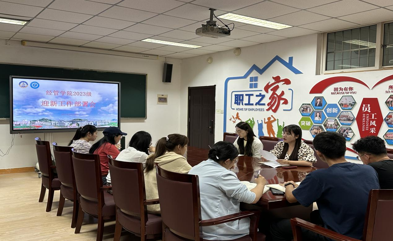 为切实做好2023级学生迎新工作,确保全体新生及家长受到温馨、周到的服务氛围,保证新生安全、有序入校,全面展示学校高质量发展内涵,8月28日晚,经管学院张鸣老师、2023级新生辅导员占晓祎及学生会全体骨干于经管楼415会议室召开2023年迎新筹备会,统筹安排并部署新生迎新具体工作。