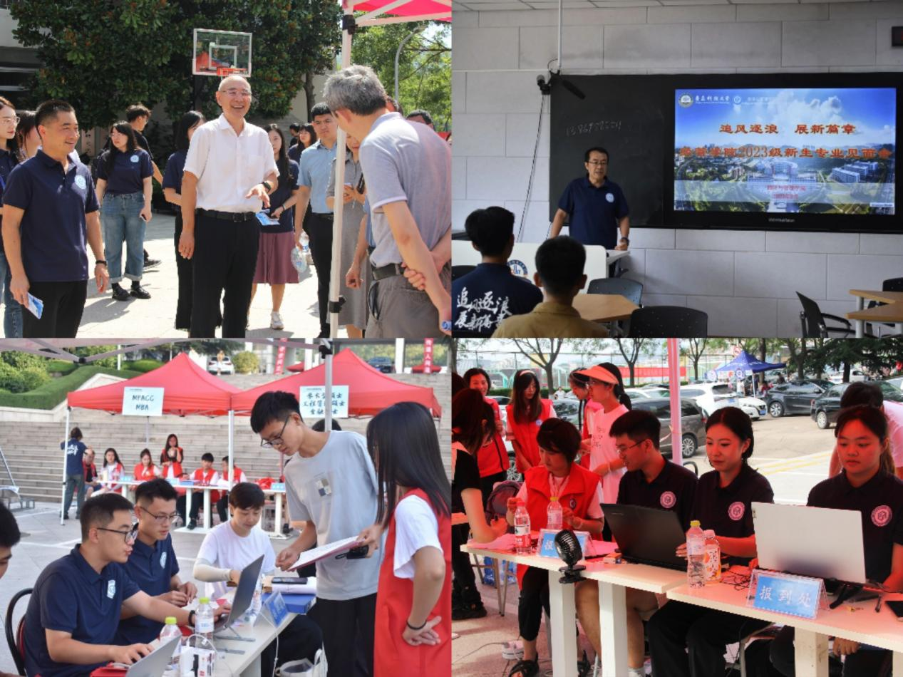 做实学院接待,处成一家人。9月2日上午10时,学校领导来到经管学院迎新现场,详细了解学生的报到情况,并对迎新工作进行指导,对各个部门的通力协作、精心准备给予肯定。同时,各专业班主任老师到岗到位,对远道而来的新生和家长表示欢迎,解答他们关于对大学学习及生活上的问题;学院继续沿用领跑学长制度,2023级经管新生的领跑学长们在报到处帐篷下耐心回复学生及家长的疑惑,帮助做好入学报到的准备工作,帮助扣好大学生活的“第一粒扣子”。