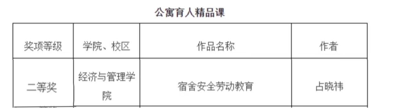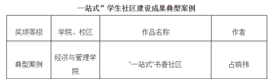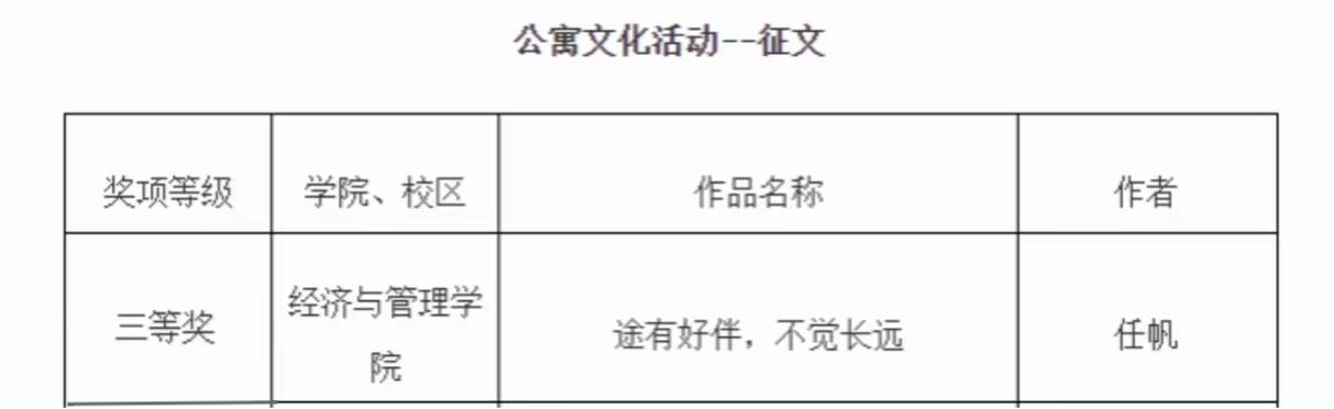 活动期间,精心组织、广泛发动,全院师生积极参与,通过微视频、征文等形式,展示经管学子创建幸福公寓、平安公寓、成长公寓和奋斗公寓等多样化的公寓风貌,让学生在公寓文化建设中发挥主人翁意识,积极参与平安文明、和美丽公寓构建,努力营造良好育人环境。经过学校审核、评选,经管学院获评一站式”学生社区建设成果典型案例、公寓育人精品课二等奖、公寓文化征文活动三等奖、优秀组织奖。