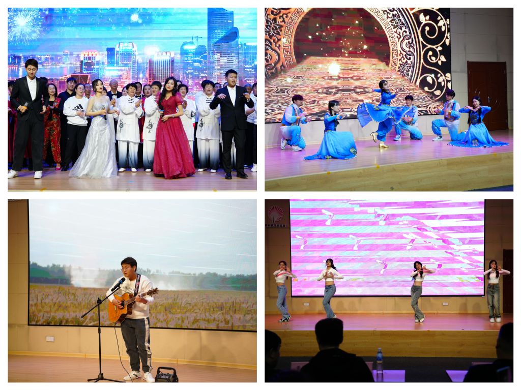 为出色完成演出任务,经管学院团委精细谋划、精心组织,多次与社区召开推进会议,积极发挥暖心愿爱心公益协会、梦想青春艺术团、少数民族艺术团的主力军作用,充分发掘我院文艺资源,全力打造5个高质量节目,融合乐器、舞蹈、歌曲节目于一体,奏响山海、舞动山海、唱响山海,凝聚青年力量为社区居民奉上一场精彩温暖的视听盛宴。吉他弹唱《父亲写的散文诗》、青春联唱《萱草花》感人至深,借歌声为家人送上祝福;现代舞《YES OK》、民族舞《绽放——民族团结一家亲》以及古筝书法表演《渔舟唱晚》朝气蓬勃,让现场观众重回学生时代,一同感受家国情怀、唱响时代之歌。
