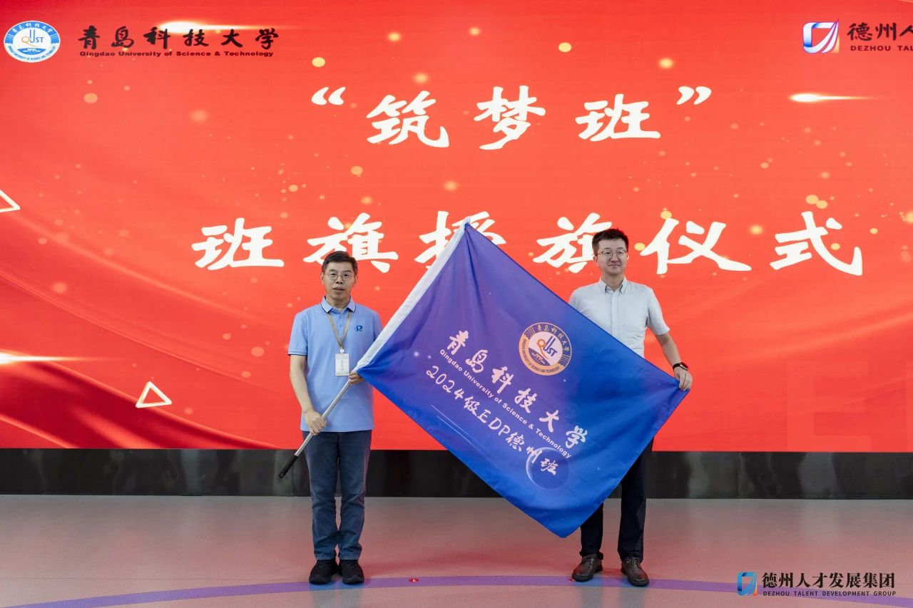 (青科大经管学院院长吕承超同志为德州班授班旗)