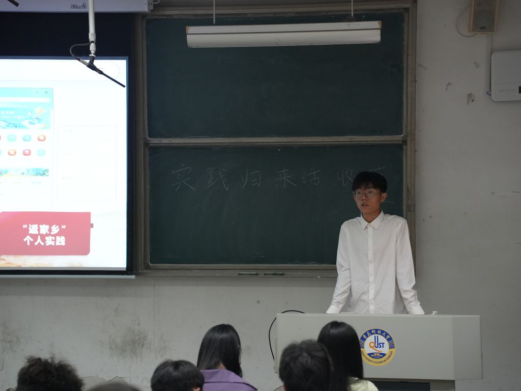 交流会上,孙雨辰、牛志强等暑期社会实践优秀团队代表和李一宁等优秀个人代表分别进行汇报发言,内容涵盖乡村振兴促进、基层服务践行等。经管学子以暑期社会实践为契机,发掘家乡红色资源,深入基层一线,充分发挥“三下乡”实践育人功能,实现思政教育与社会实践活动的知行合一。各代表从实践缘起、实践经过及实践感悟三个层面深析,通过PPT展示、视频图片相结合的形式展示了丰富的社会实践成果,体现出经管学子的人文关怀精神与青年责任担当。