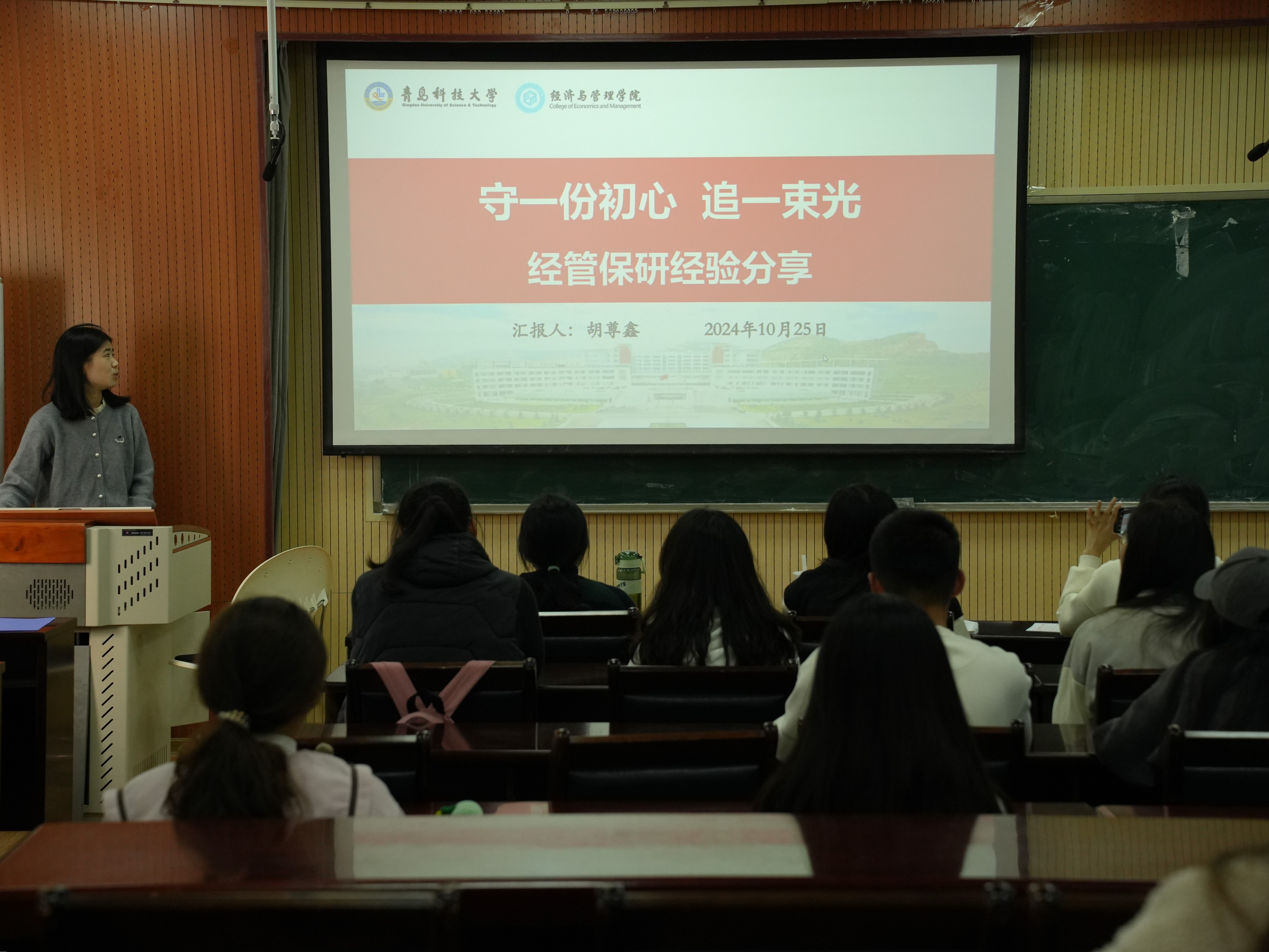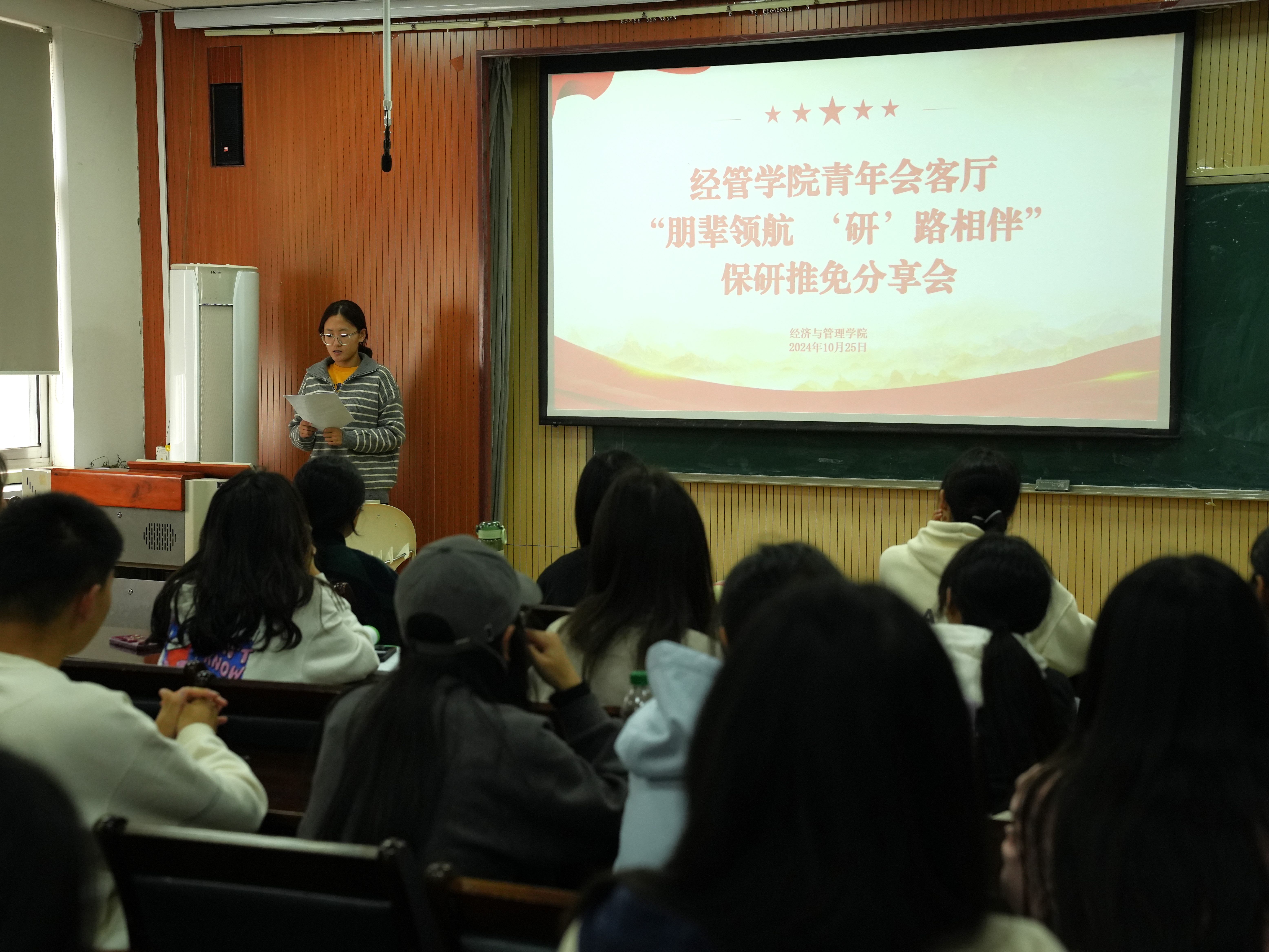 为进一步发挥青年会客厅在思想引领方面的榜样带动作用,把“发挥朋辈力量”和“青年引领青年”落实落细,经管学院团委积极响应校团委号召,从学生实际需求出发,于10月25日下午在经管楼419开展第八期青年会客厅——“朋辈领航,‘研’路相伴”保研推免分享会,帮助学生更好地了解保研政策和流程,提高学生的竞争力和综合素质。本次分享会邀请了2021级的优秀学子进行经验分享,经管学院2022-2024级本科生参加。