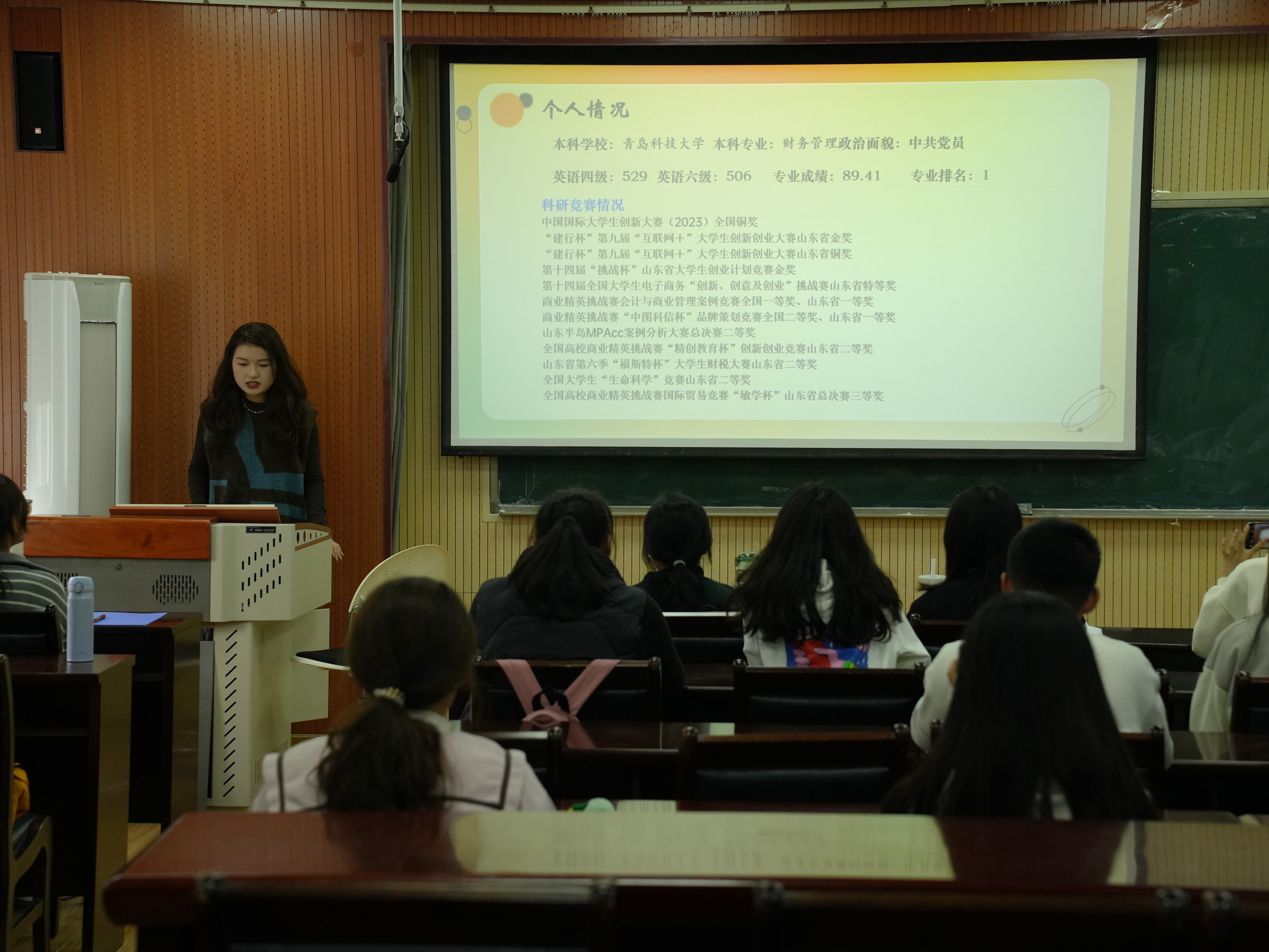 城管专业的王玺媛结合自身经验详细地梳理了保研时间线、前期准备、面试技巧及心得体会,在夏令营申请及竞赛方面为大家指点迷津,鼓励大家未雨绸缪,制定科学合理的复习计划,特别是要提前了解保研政策、明确保研目标院校及专业、制定科学合理的复习计划。财务专业的张一豪围绕保研的过程、联系导师的经验、保研面试的应对策略等为同学们提供了极具针对性的指导。管理专业的胡尊鑫以自己的亲身经历为蓝本,全面剖析了保研的条件、优势、时间线等,为同学们描绘了一幅清晰的蓝图。