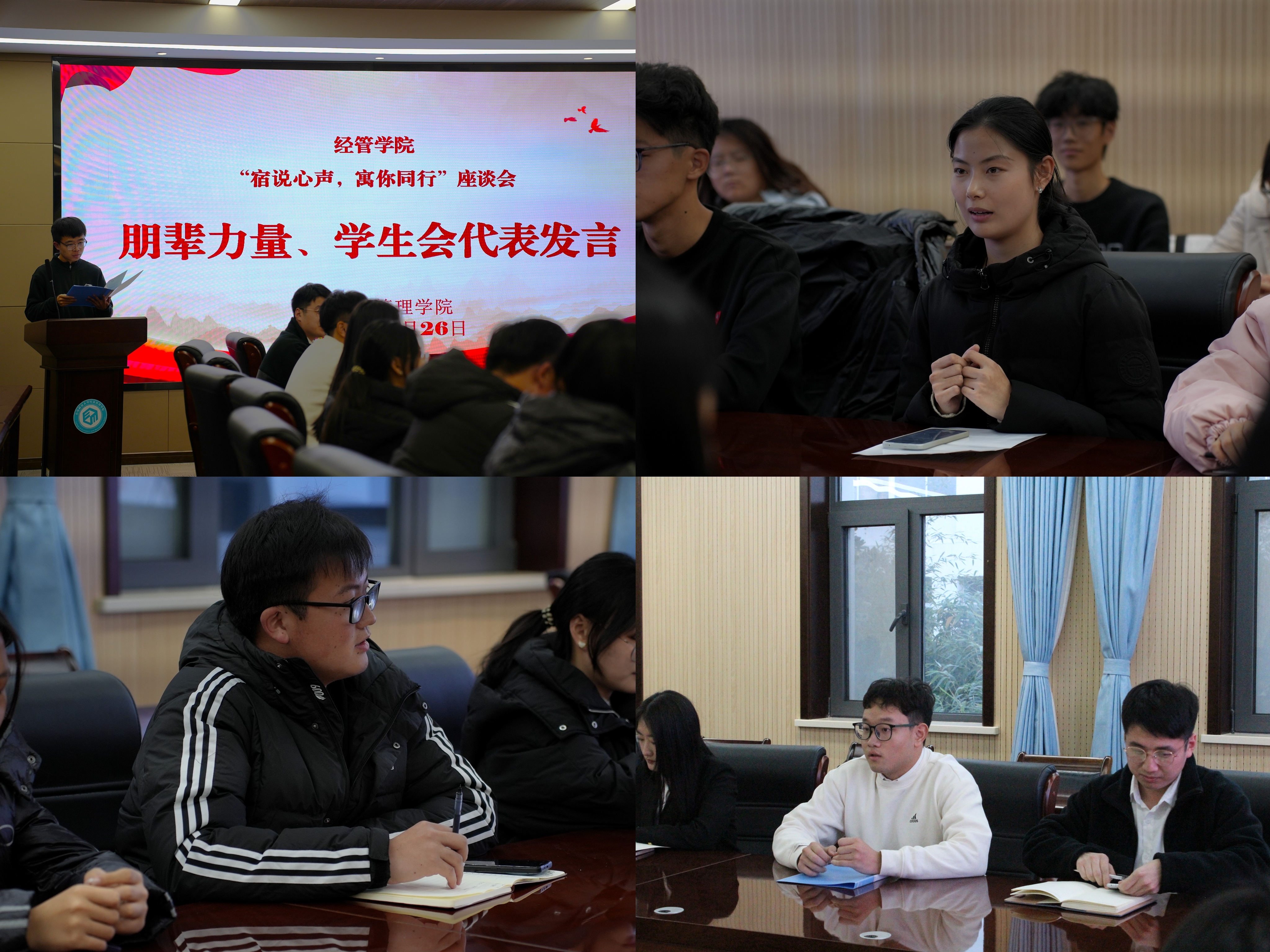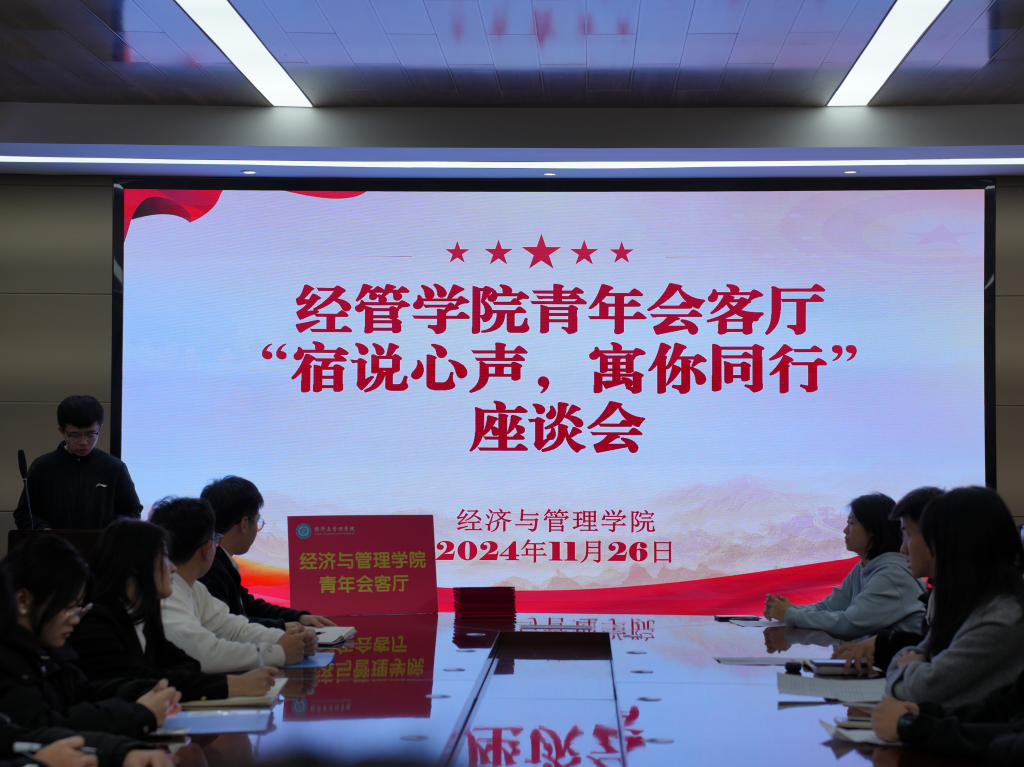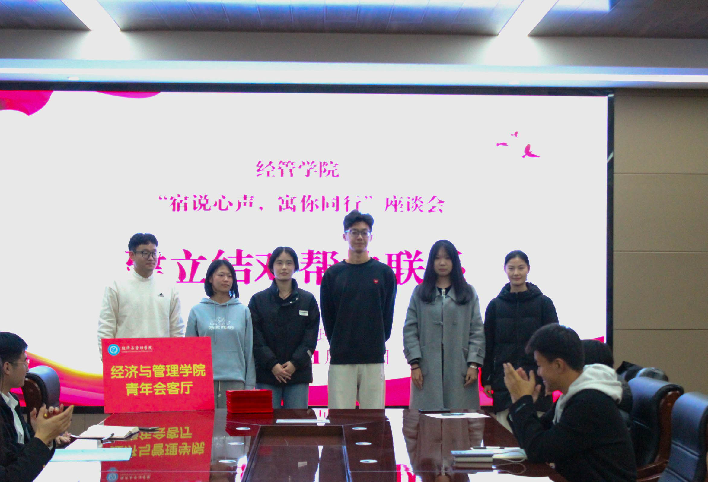 为深入发挥青年会客厅的思想引领与榜样示范效能,切实将“朋辈助力”与“青年互促”理念转化为实际行动,经管学院团委积极响应校团委“我为同学办实事”号召,于2024年11月26日下午在经管学院313会议室成功举办青年会客厅系列活动之“宿说心声,寓你同行”座谈会。本次座谈会邀请领跑学长、朋辈力量、学生会部分成员以及24级各宿舍代表共同探讨宿舍帮扶与成长发展之路。
