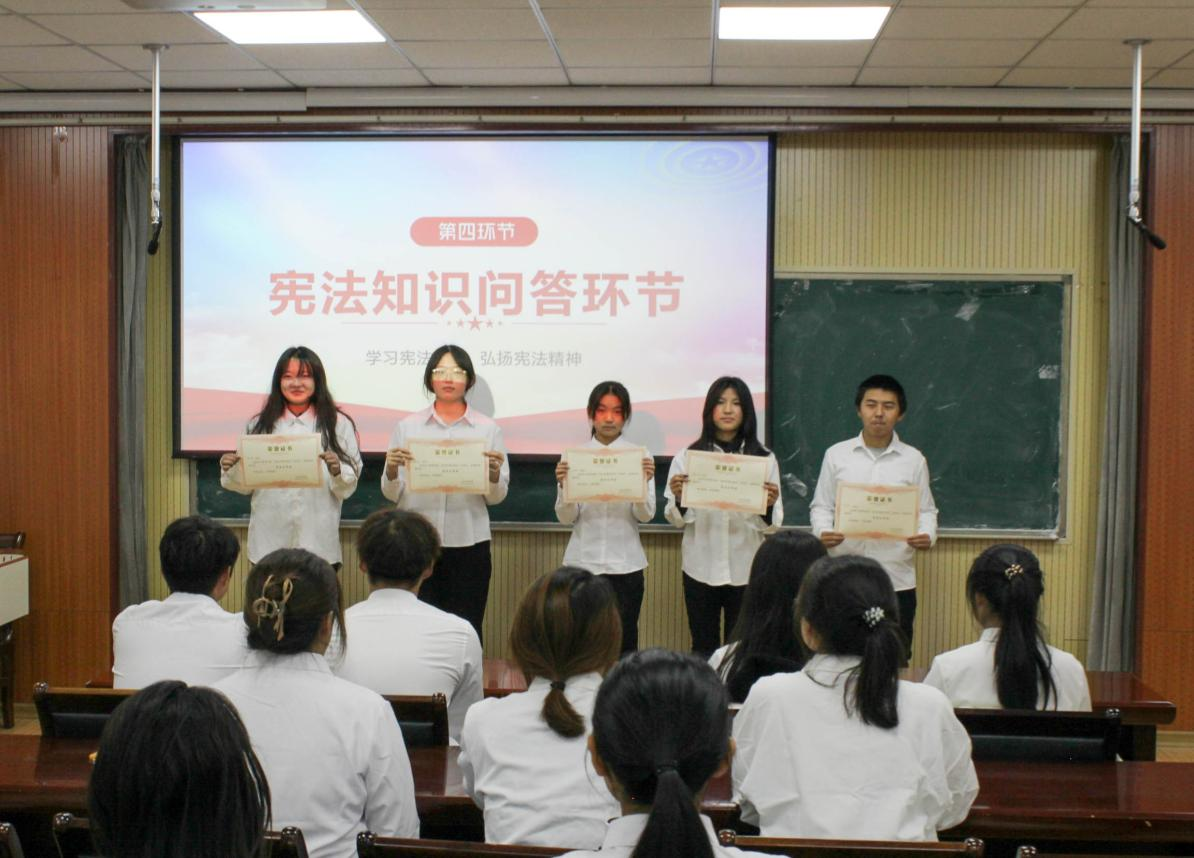 宪法知识竞答比赛。学院以各班级为单位,组织开展“宪法知识竞答”比赛,以赛领学,以赛促学,通过激烈的比赛氛围,加深学生对习近平法治思想、宪法精神的理解和记忆,推动宪法知识入脑入心。同时,通过比赛选拔出优秀选手,树立榜样,带动全院学生学习宪法的积极性。