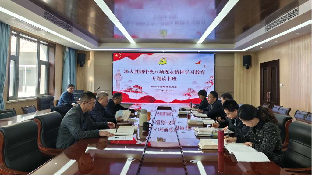 4月1日上午,经管学院在经管楼313会议室召开深入贯彻中央八项规定精神学习教育专题读书班,联系点校领导、党委书记杨天梅参加学习交流,经管学院全体中层干部参加学习,读书班由学院党委书记李勋来主持。