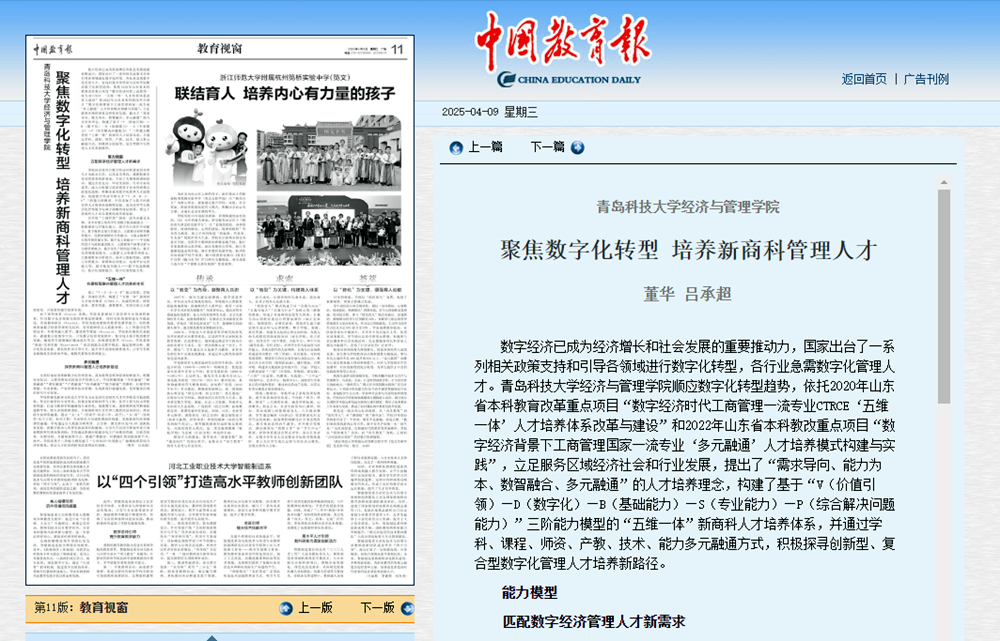 《中国教育报》bat365官方官网:聚焦数字化转型 培养新商科管理人才