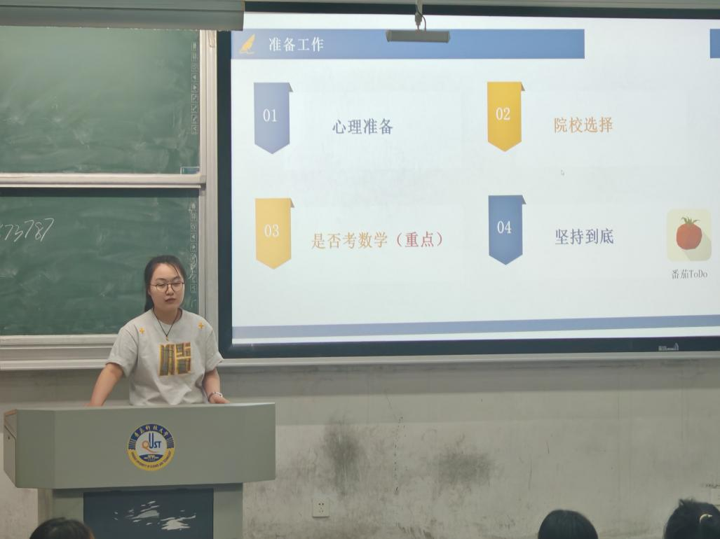国际经济与贸易专业的杨婧围绕考研公共课的复习方法展开分享。她针对数学和政治两门科目,分享了自己的学习技巧和备考心得以及自己在备考过程中调整心态的方法,鼓励同学们保持积极乐观的心态,克服备考过程中的困难和压力。