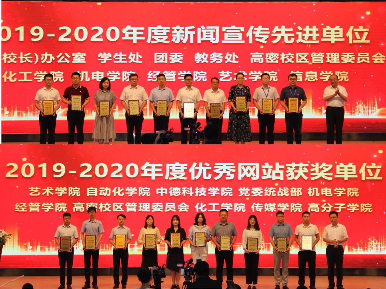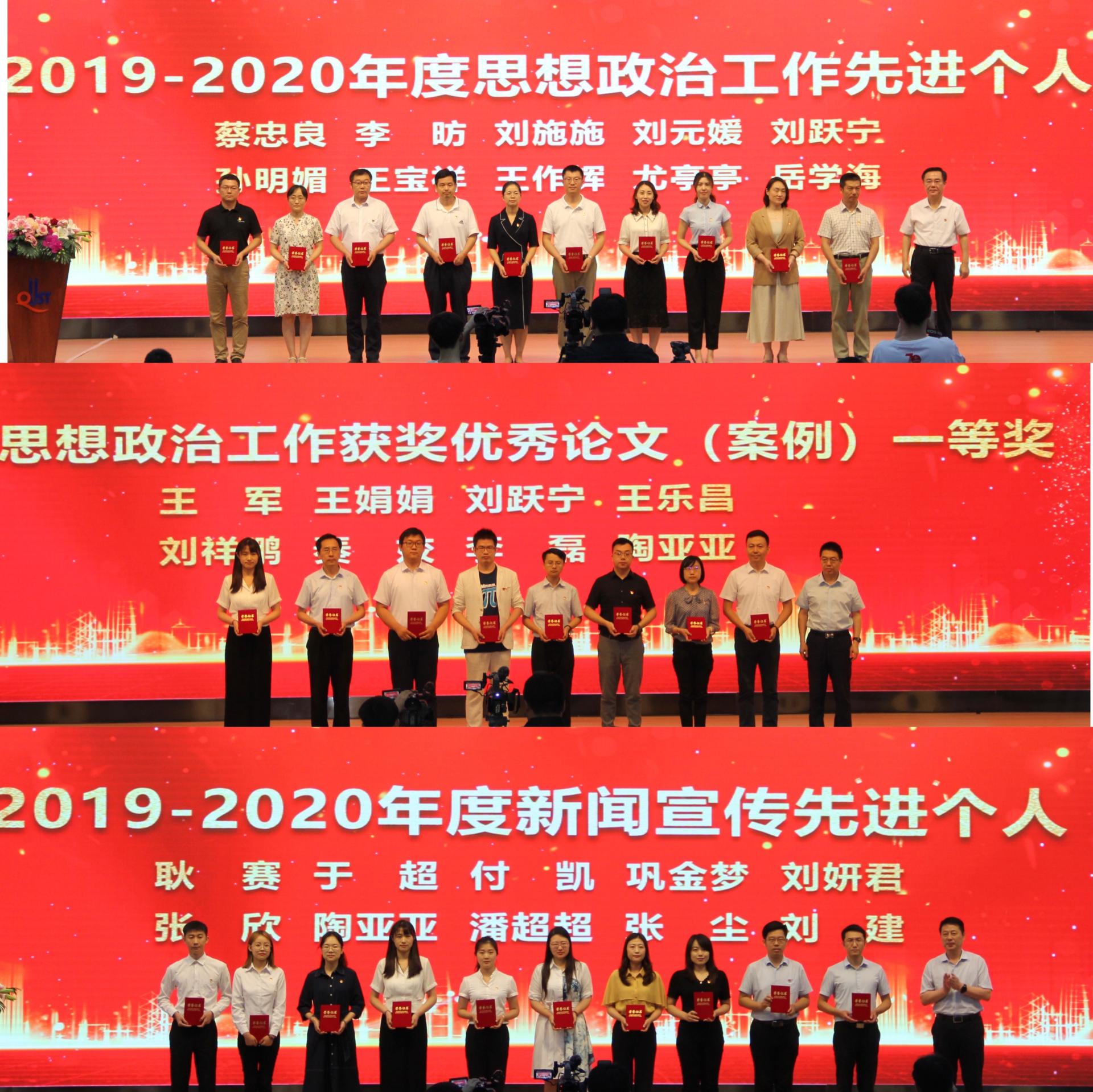 7月16日上午,bat365官方官网2021年宣传思想文化工作会议暨2020-2021党建与思想政治教育研究会年会在崂山校区第二报告厅举行,会上,学校对2019-2020年度新闻宣传先进单位、先进个人及党建与思政工作优秀获奖论文等项目进行表彰。