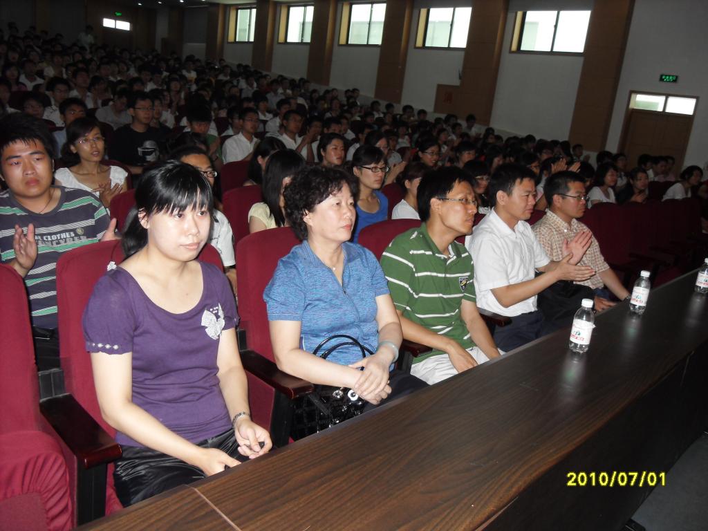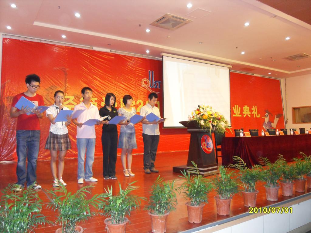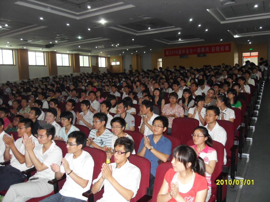 一首表达对母校依依惜别之情和深深祝福的诗朗诵《离别》之后,经管学院毕业典礼在雄壮的国歌声中拉开帷幕。经管学院院长李立代表学院全体教师与在校生向563名2010届本、专科毕业生表达了衷心的祝贺和美好的祝愿!李立祝福同学们在未来的岁月里,能够顺利实现成功的渴望,创造更多财富,赢得更多尊重、做出更多社会奉献,为同学们自己、为父母,也为母校带来更多自豪和荣耀。他希望同学们尽快调整好自己的心态,完成从学生到员工、到市民的角色转变,希望同学们尽快与昨天的自我告别,直面人生的挑战,先做能干的事情,再做喜欢干的事情,找到自己安身立命、奉献社会的位置。他用两个小故事与同学们分享了对“激情与梦想”的理解。他说,我们不要讲如何实现你的梦想,而是要用梦想引领你的一生,用感恩、真诚的心态引领你的一生,用执着、乐观的态度引领你的一生。每个从大学这一神圣殿堂中走出来的学生都应怀有一个放飞理想的梦想,并用这个梦想引领自己的未来。他鼓励同学们发扬“敢为人先”的科大精神和“勇承重载”的橡胶品格,在各条战线上用智慧创造辉煌的人生。最后,他用汪国真的一首诗《热爱生命》结束了发言。李院长的激情演讲赢得了同学们长时间的热烈掌声。
