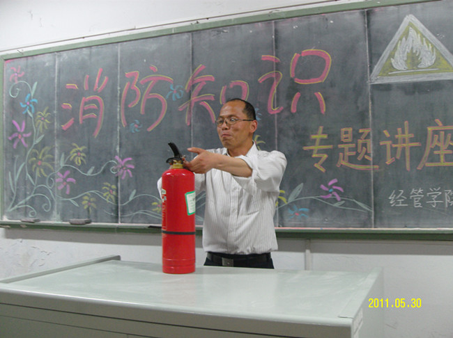 为贯彻落实《bat365官方官网消防宣传教育活动》的通知精神,增强同学们的消防意识,落实校园安全工作,经管学院于5月30日晚在四方校区2教301教室举办消防知识专题讲座暨消防器材使用技能知识竞赛。公安处消防科曾明老师亲临现场为大家讲解。