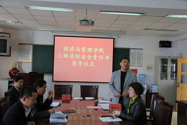 4月18日下午,经管学院在511会议室举行三级消防安全责任书签约仪式。经管学院党政领导及全体教职工参加了会议。
