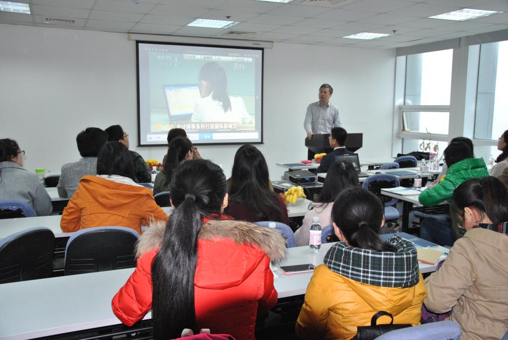 活动先在信永中和会计师事务所青岛地区首席合伙人宋进军总经理的带领和介绍下参观所内基本布局。参观完毕后,召开了现场授课座谈会。宋进军总经理及其助理与同学们展开了近距离交流,介绍了事务所的发展、招聘、实习、职员职位、职业技能等方面的情况,并对同学们提出的问题做出了完整、清晰的回答,展现出优秀会计师必须具备的较高水平的逻辑思维、表达能力、适应、驾驭能力,让同学们对事务所工作有了更加清晰的了解,并对未来的职业规划有了更加明确的认识。刘院长代表学院表达了信永中和事务所对我院学生热切接待的感谢。