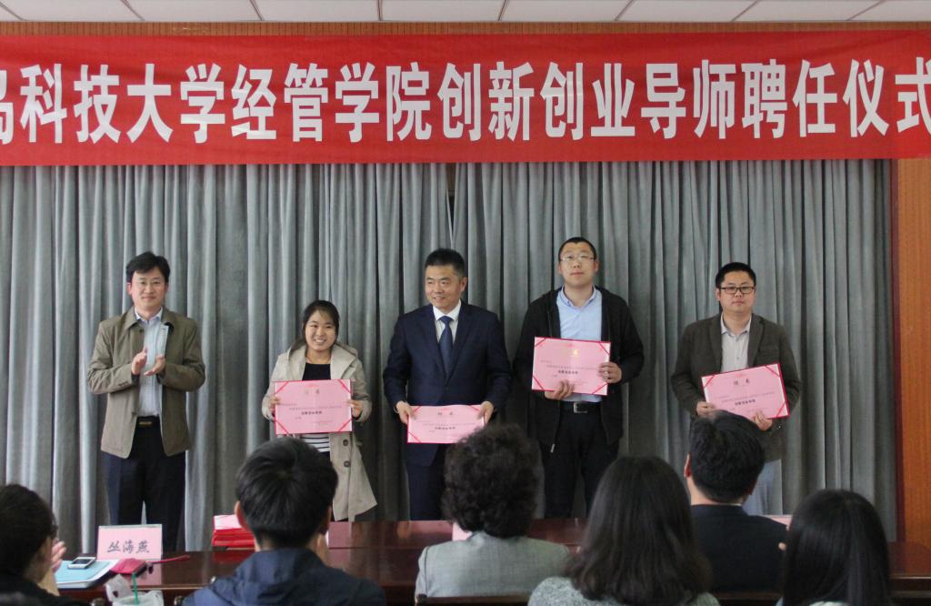 仪式上,经管学院院长王志宪宣读了《bat365官方官网经管学院聘任创新创业导师的决定》,郑德前、王锋业为创新创业导师颁发了聘任证书。雷沃重工集团海外品牌传播部部长朱强代表创新创业导师发言。