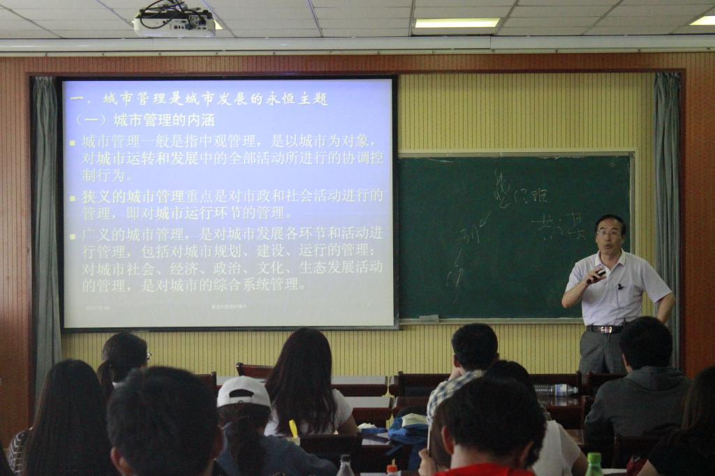 会上,刘文俭教授首先强调了城市管理是城市发展的永恒主题,现代化城市管理不仅是以市政管理、环境管理、交通管理、应急管理和城市规划实施管理为主要职责的城市制度与市民生活的双向互动,更是当下推进“三分建设、七分管理”的现代化城市发展的强大动力。其次深入分析了现代城市在管理主体、管理目标、管理对象、管理手段、管理方式、管理方法等方面日益多元化、综合化的特点,又详细阐释了在加强城市导引、城市规范、城市治理、城市服务、城市营销等现代化城市管理主要职能方面的要求与措施。最后,刘文健教授针对现代城市中普遍存在的“三高”、“停车难,行车难”、“占道经营,烧烤扰民”等“城市病”典型症状,提出了一系列诸如发展新型建造方式、推广节能技术、推进海绵城市建设、加强污水垃圾综合治理等切实可行、见解独到的想法和意见。