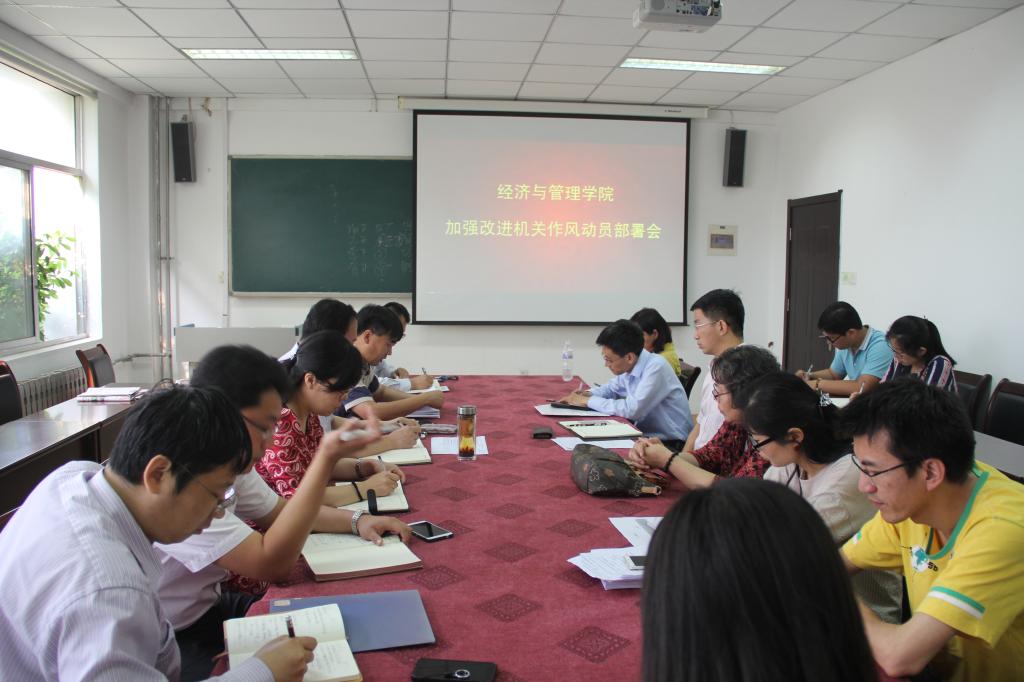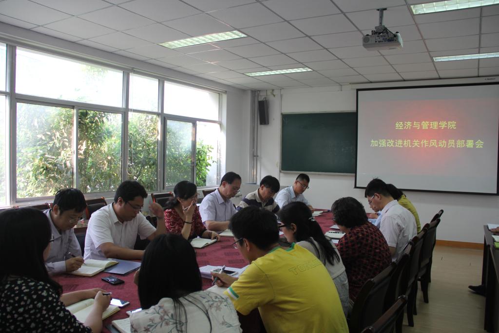6月2日下午,经管学院加强和改进机关作风建设动员部署会在经管楼415室召开。院领导及学院办公室、分团委(学工办)、教学办、资料室、实验中心、MBA教育中心、MPAcc教育中心全体工作人员参加了会议。
