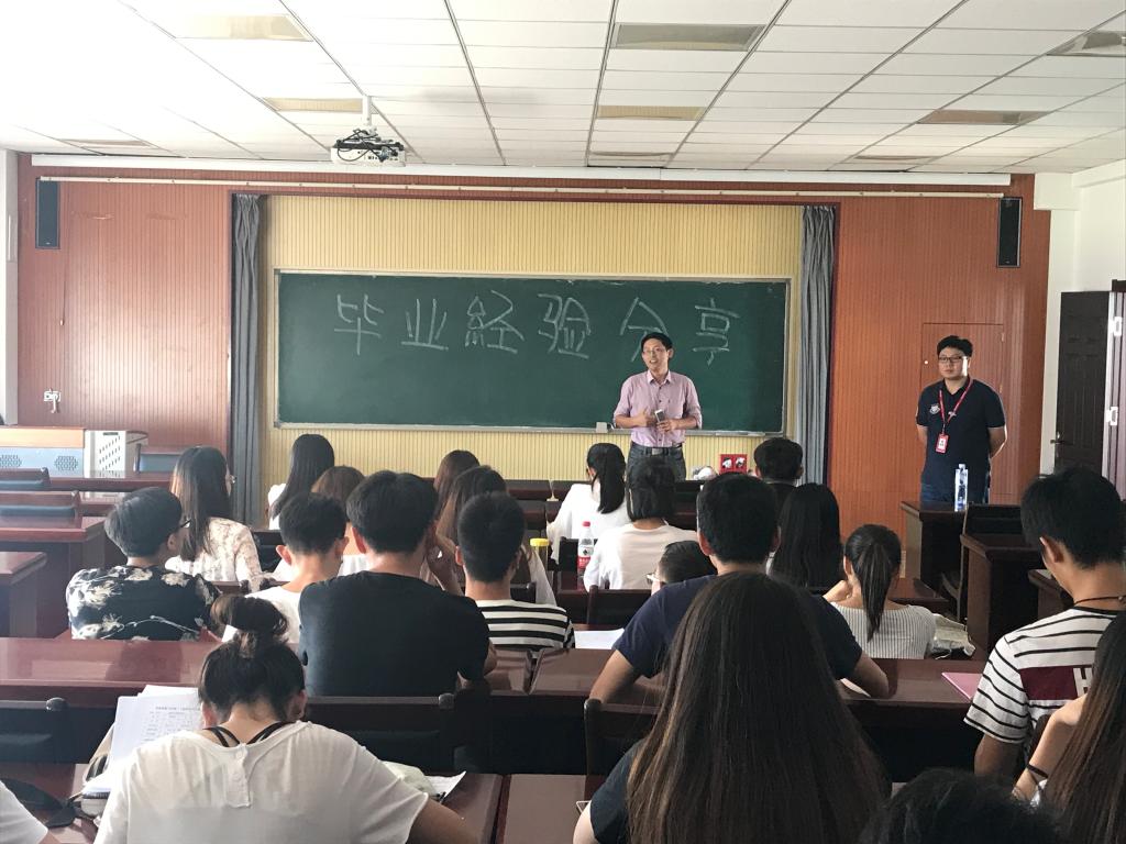 9月13日下午,bat365官方官网物流管理专业于经管楼505室举行毕业经验分享会。出席本次分享会的嘉宾有物流管理系主任吴成锋老师、物流管理系副主任索琪老师、京东山东人力资源部经理、2009级物流管理专业优秀毕业生毕德超以及2014级物流管理专业全体学生。
