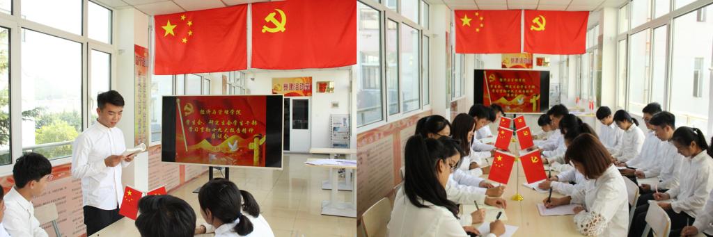 在党的十九大胜利召开之际,经管学院将线上宣传引导与线下活动开展相结合,通过座谈研讨、主题学习等多种形式使十九大精神“零时差”进入学院学生教育管理工作。