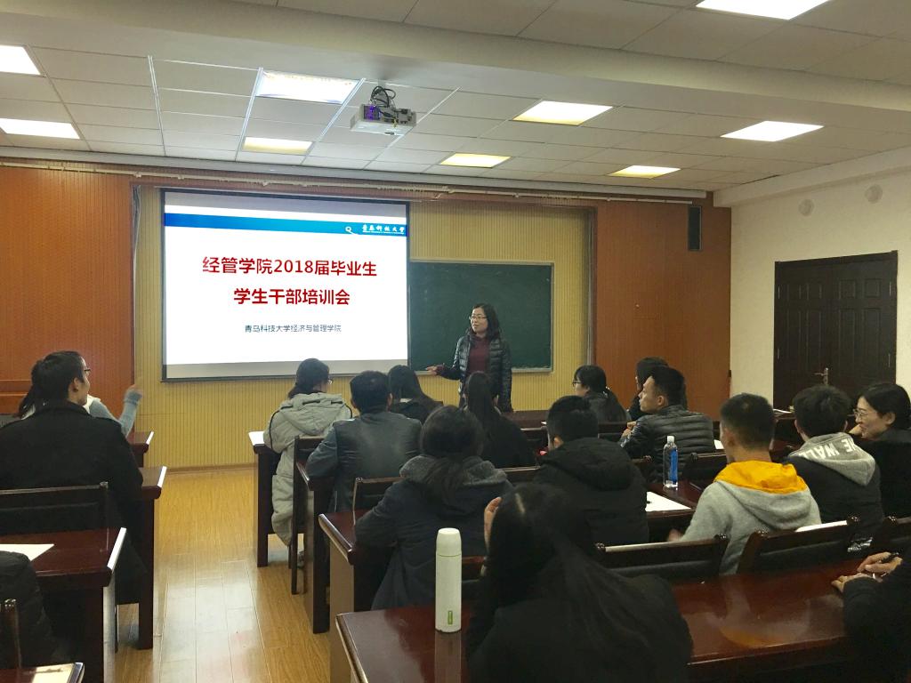 11月22日,经管学院在419会议室召开2018届毕业生学生干部培训会。活动以学习宣传贯彻党的十九大精神,深刻领会“创新驱动发展”精髓,落实毕业生就业择业技能教育为主题展开。学院分团委书记兼2014级辅导员李雯雯、全体2018届毕业生党员以及学生干部参加了此次会议。