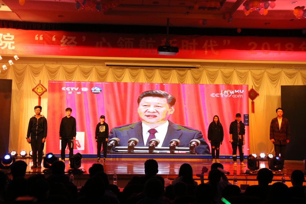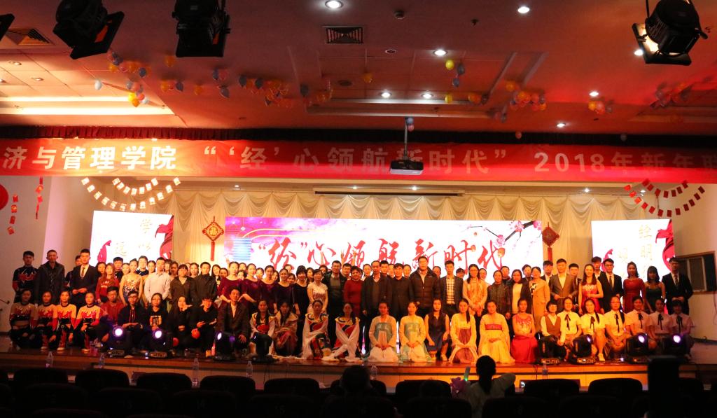 为弘扬十九大精神,展青春朝气,凝聚发展正能量,12月22日晚,以“‘经’心领航新时代”为主题的经管学院2018年新年联欢晚会于崂山校区第二报告厅成功举行。校工会主席郭曰铎、学生处副处长周宪锋、教务处副处长王泽鹏、保卫处副处长严增兴、团委副书记杨小明、经管学院院长王志宪、经管学院党总支书记聂法良、学院其他党政领导、学院全体老师、兄弟学院老师代表、校院学生会主席及学生代表共800余人共同观看了本次晚会。晚会由经管学院分团委、学院分工会承办。