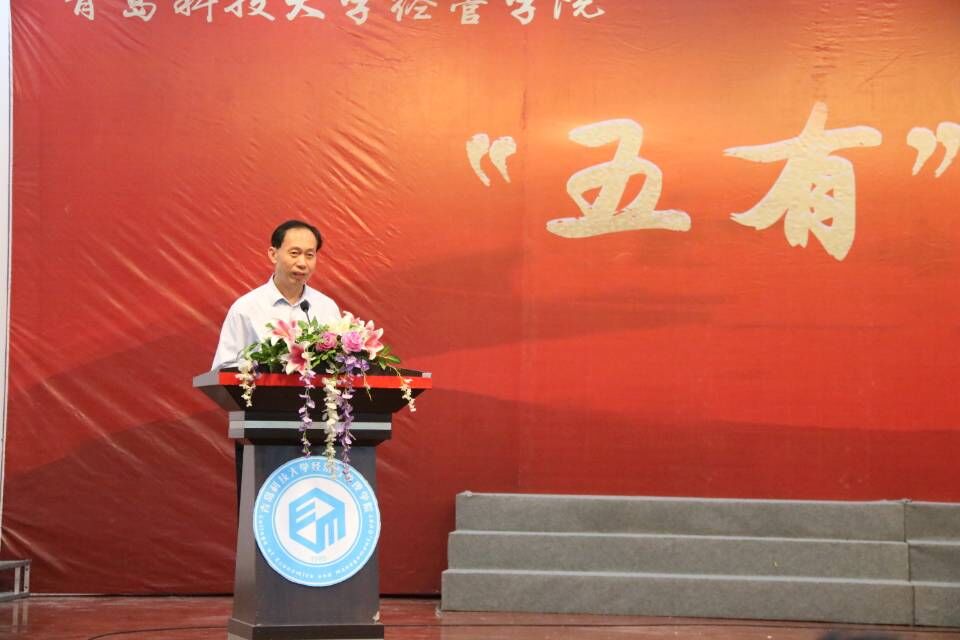院长王志宪作毕业季致辞,他对于2018届毕业生四年以来的成长给予了肯定,并希望毕业生在工作岗位上能够继续秉持着“经明行修 观人悟道 学以致用 远行自迩”的院训,传承和弘扬经管家风,艰苦奋斗,做“有理想、有本领、有担当”的新时代青年。随后,11位教师代表一一上台接受毕业生献花并为毕业生送上美好的祝愿。副院长董华、杨友才、姜铭为27位2018届山东省优秀毕业生颁奖。