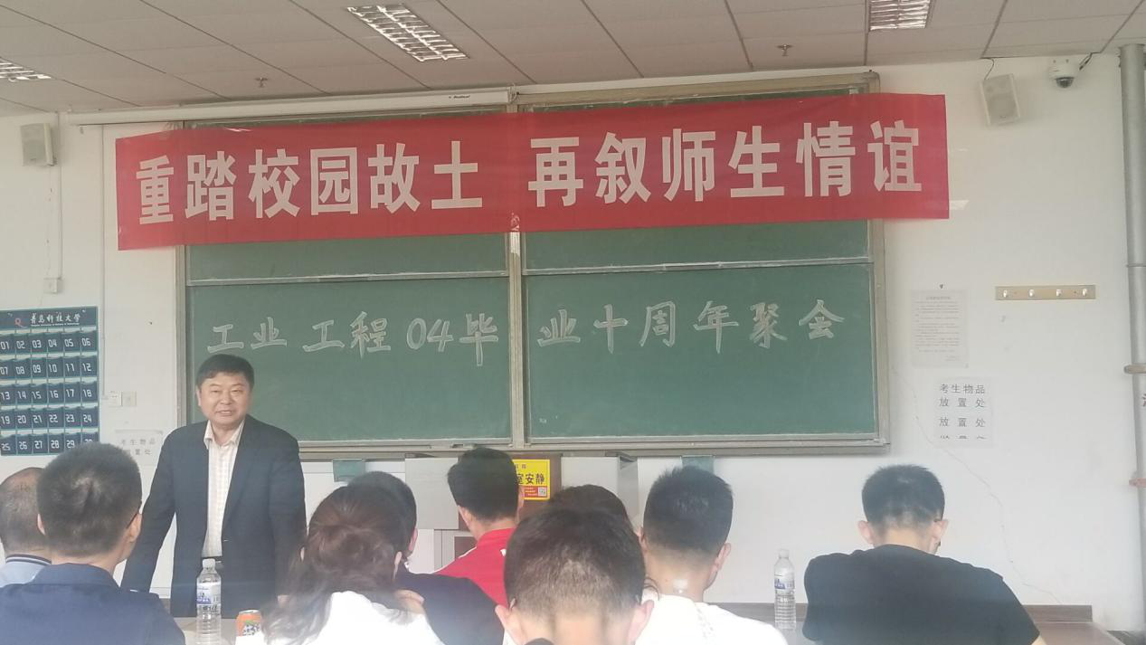 会议伊始,孙在东老师和赵慧娟老师分别就重踏校园的04级学长学姐发表讲话。随后,学长学姐分别就毕业后的十年发展做经验交流。工业041班班长孙超率先进行经验分享,分享了他对工业工程专业的理解,他说“工业工程之魂即提高效率”。