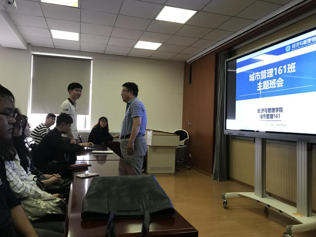6月4日,校纪委副处级纪检员傅进走进联系班级,参加经管学院城市管理161班主题班会,与青年学生共话学校发展、共享发展成长。